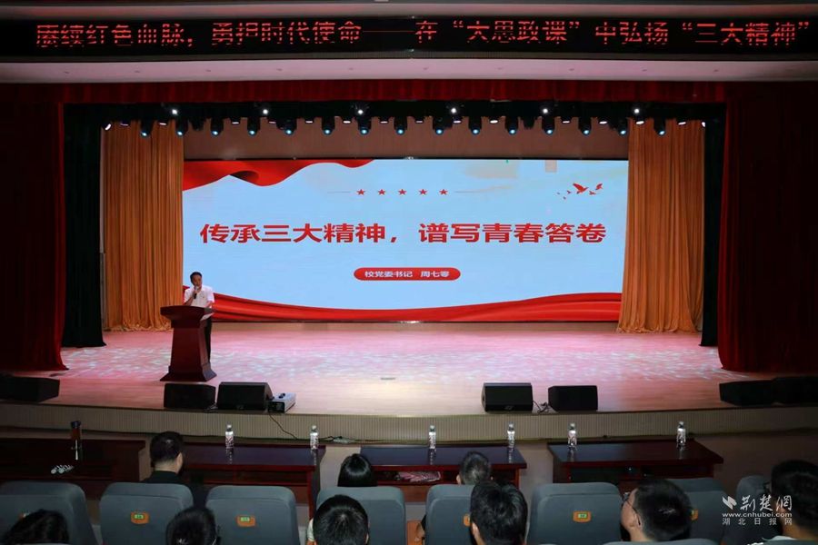 活動在集體朗誦《我的祖國》中拉開帷幕,學生們用飽滿激昂的語言表達對祖國的熱愛。浠水一中黨委書記周七零從深刻理解“三大精神”的內涵與時代價值、“三大精神”與我們百廿一中的精神共鳴、踐行“三大精神”擔當新時代青春使命等三個維度,解讀“三大精神”的深刻內涵和當代青年的踐行方向。浠水一中校史宣傳片的播放,更增強了學子們對學校的認同感與歸屬感。