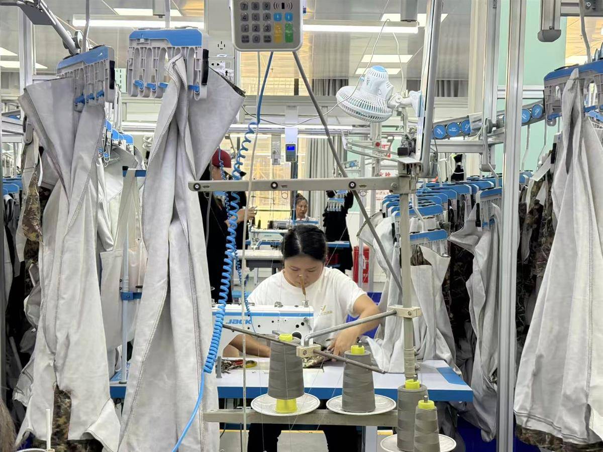 如今的天門,已形成“家家有裁縫、戶戶帶貨直播”的新生態(tài)。AI數(shù)字人主播24小時多語言直播,智能吊掛系統(tǒng)讓每塊布料自帶“電子車票”,自動匹配工位。曾經(jīng)10人一周的工作,現(xiàn)在兩個人30分鐘即可完成。