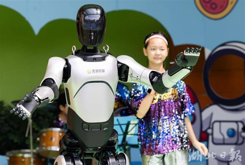 9月1日,武漢市光谷第二十一小學的開學第一課充滿科技感。腦機接口、人形機器人等前沿科技成果集中亮相,讓學生們近距離感受科技魅力,在心中播下科學探索的種子,將科創精神融入日常學習與成長之中。(湖北日報全媒記者 薛婷 攝)