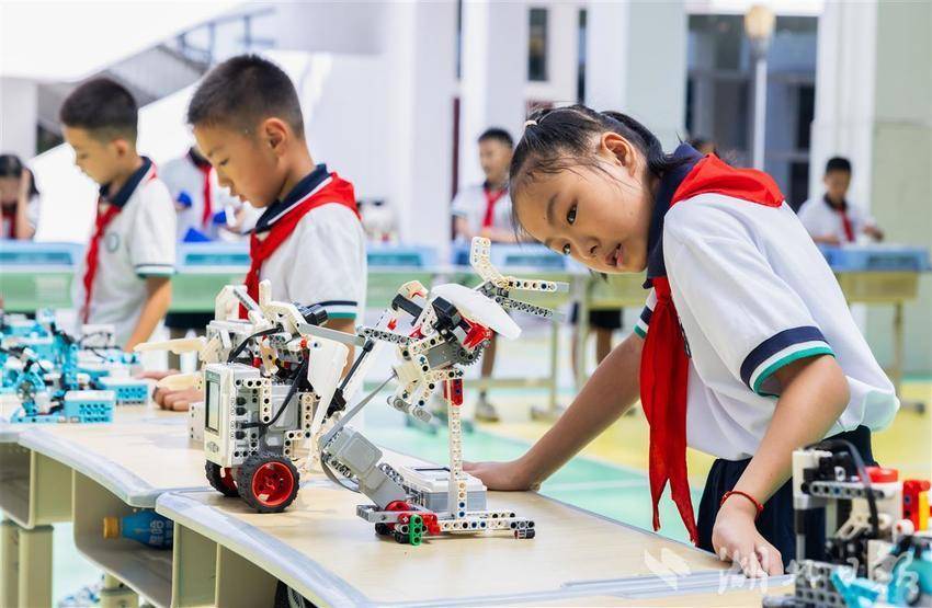 9月1日,武漢市光谷第二十一小學,同學們沉浸在科技實踐活動中。