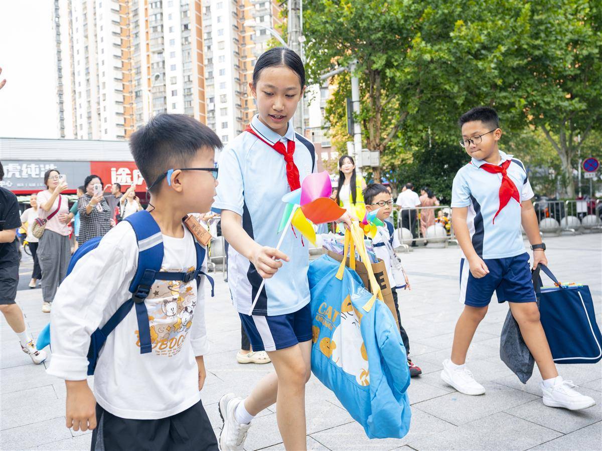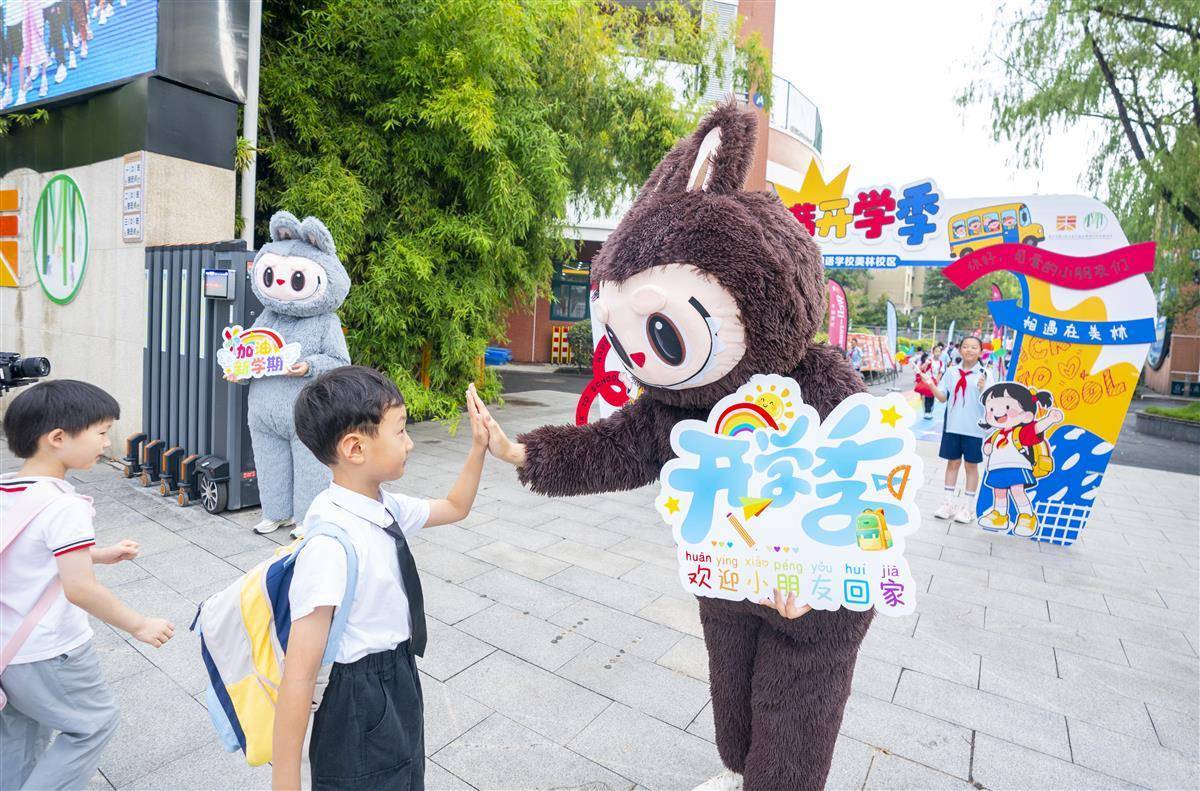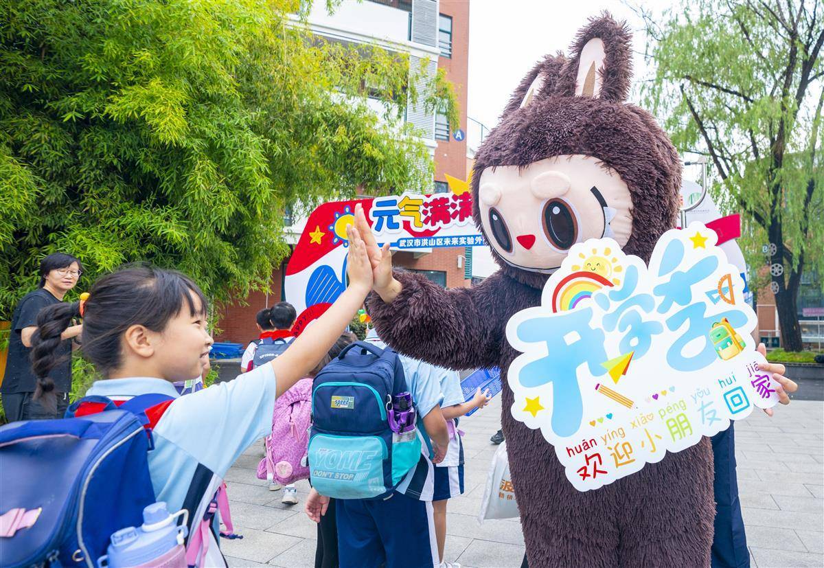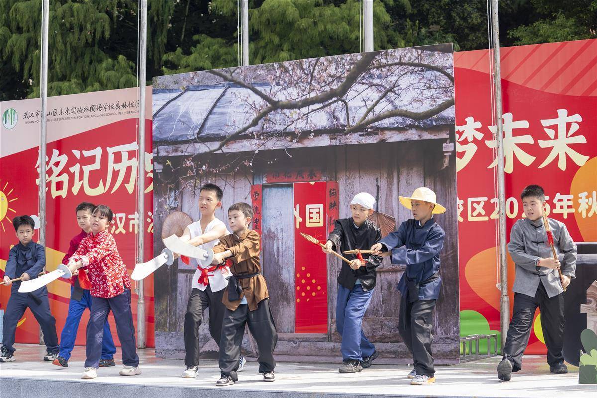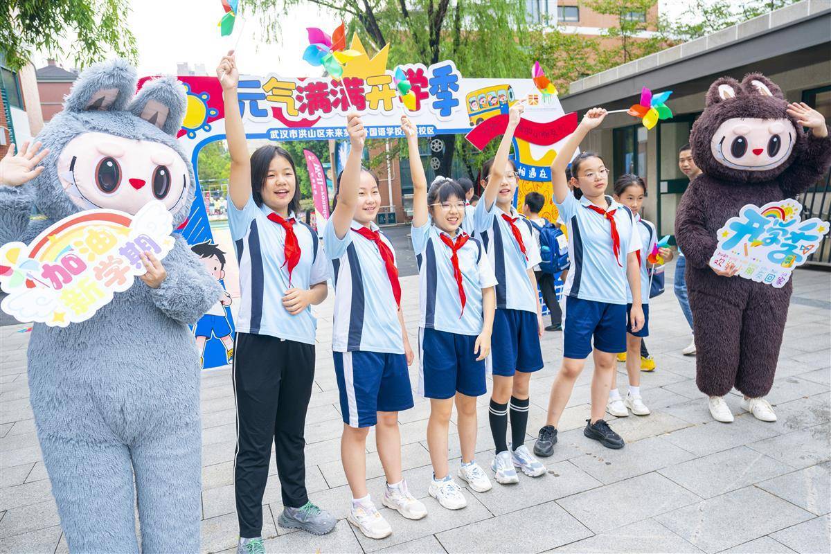 9月1日,武漢市洪山區未來實驗外國語學校美林校區,教師裝扮成人偶拉布布迎接同學們。開學典禮上,學生們演繹的抗日情景劇《小英雄雨來》,為全體師生帶來了別樣的開學體驗,讓大家在沉浸式體驗中重溫那段烽火歲月,銘記歷史中的熱血與不屈。六年級學生則化身“歷史講解員”,圍繞一幅十米長的歷史畫卷,用稚嫩卻堅定的聲音訴說著“中國越來越好”的真切感悟,展現了年輕一代對國家發展的關注與自豪。教師們集體合唱的《保衛黃河》氣勢磅礴,激昂的旋律中傳遞出中華民族的堅韌與奮進,為現場注入了濃厚的家國情懷。(湖北日報全媒記者 魏錸 通訊員 雷迪 攝)