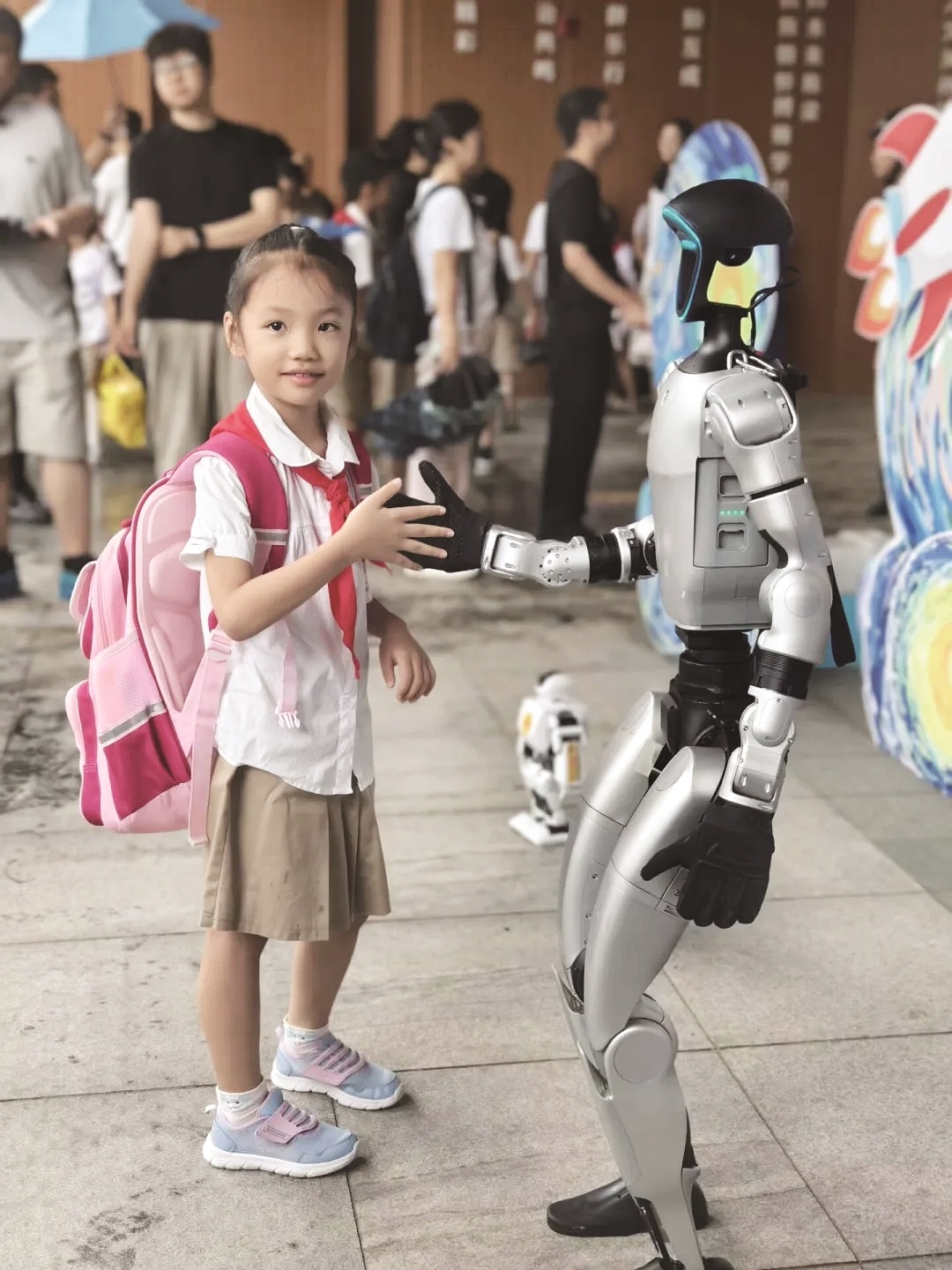 楚天都市報極目新聞訊(記者張屏 通訊員張雅潔 侯長強 王珊 實習生葉錦添)孩子們走進校園,與機器人握手;樂隊的孩子們演奏、唱歌,機器人、機器狗合著拍子跳舞……9月1日,武漢市百萬中小學生迎來新學期,機器人、機器狗成了孩子們的新“同學”。家長們表示,孩子的科學熱情被點燃了。