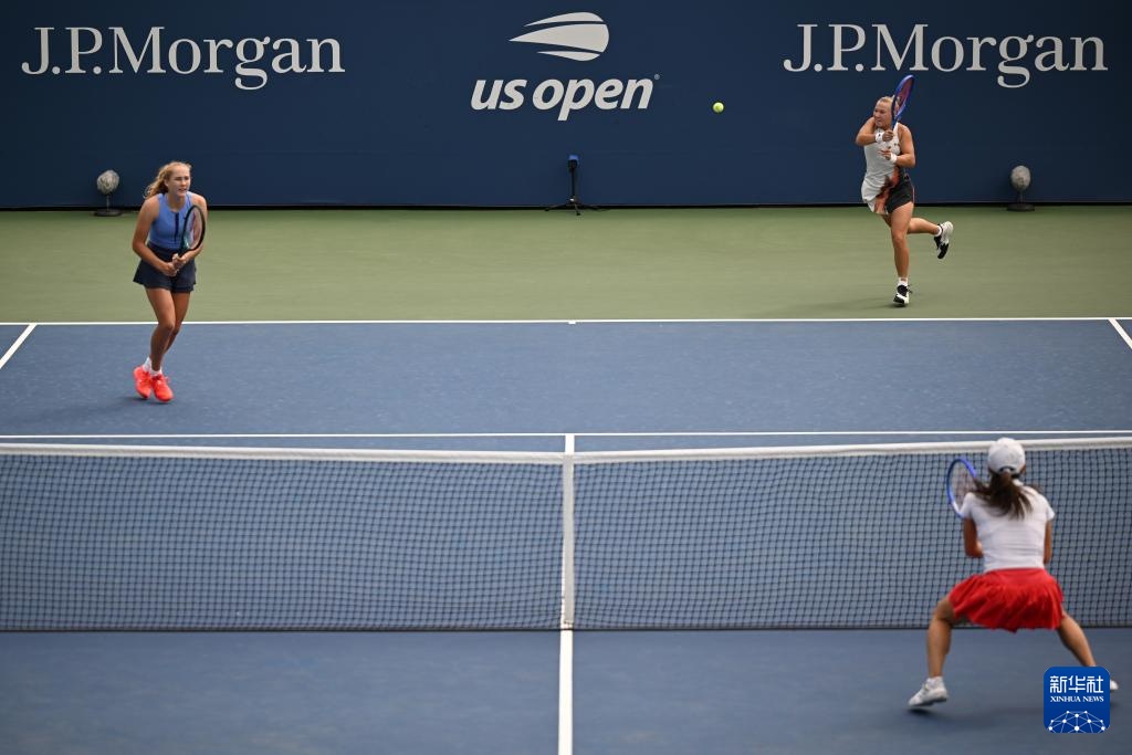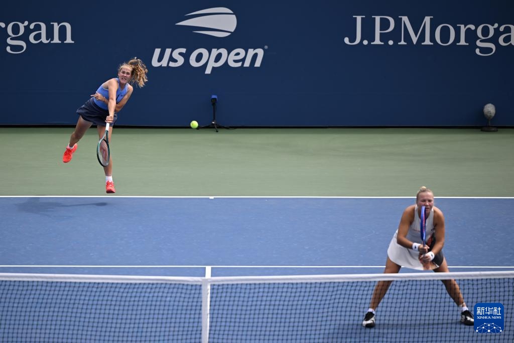 9月1日,安德烈耶娃(左)/施奈德在比賽中發球。