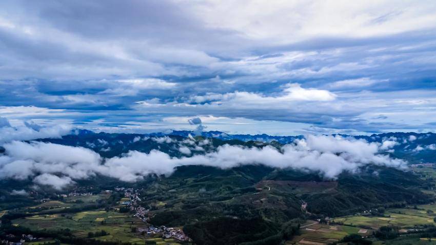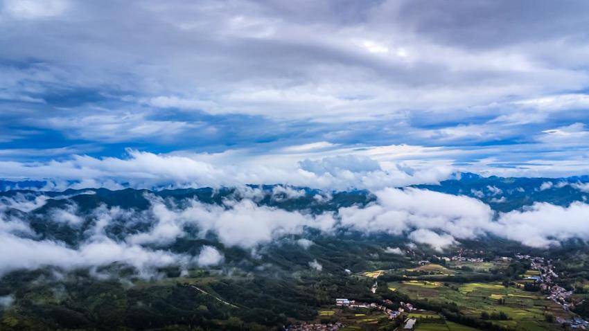 湖北日?qǐng)?bào)客戶端訊(通訊員李宗俊、鄧倩)近日,南漳縣九集鎮(zhèn)龍門(mén)社區(qū)上空云霧繚繞,村莊、河流、山巒、稻田等時(shí)而被飄過(guò)的云霧籠罩,時(shí)而露出蒼翠靜謐的“身姿”,若隱若現(xiàn),宛如仙境,為這片寧?kù)o的土地增添了幾分神秘與詩(shī)意。