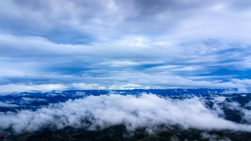 白霧在茫茫群山中聚散開(kāi)合,時(shí)而如棉絮,時(shí)而像薄紗,時(shí)停時(shí)動(dòng),來(lái)去無(wú)形,縹緲無(wú)影。