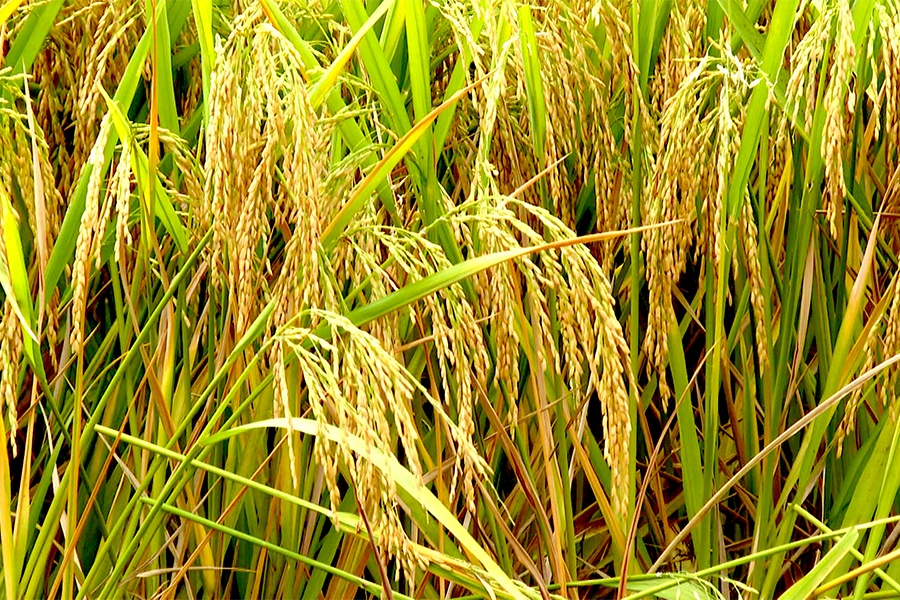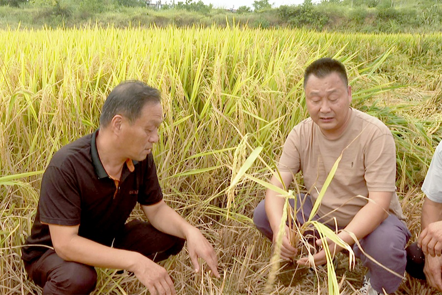 浠水縣汪崗鎮汪家崗優質稻專業合作社負責人 張本兵:我今年是第一年(種植),已經達到了十一二穗每顆,每畝(產量)達到1600斤左右,在同等的情況下是比較高產。
