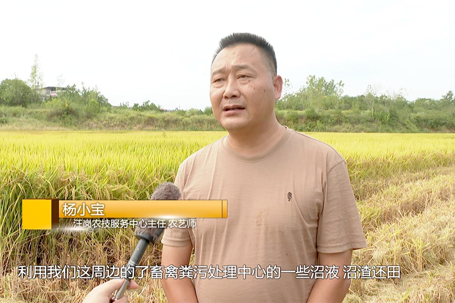 汪崗農技服務中心主任 農藝師 楊小寶:利用我們這周邊的畜禽糞污處理中心的一些沼液、沼渣還田,把土壤有機質進行提高,重新規劃了一下這個水利溝渠,以及取水的地點。