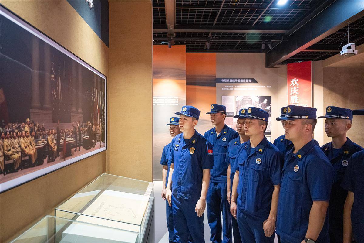 9月2日,來自花山消防中隊的消防員在省檔案館花山新館參觀“砥柱中流——紀念中國人民抗日戰爭暨世界反法西斯戰爭勝利80周年湖北抗戰檔案文獻展”。
