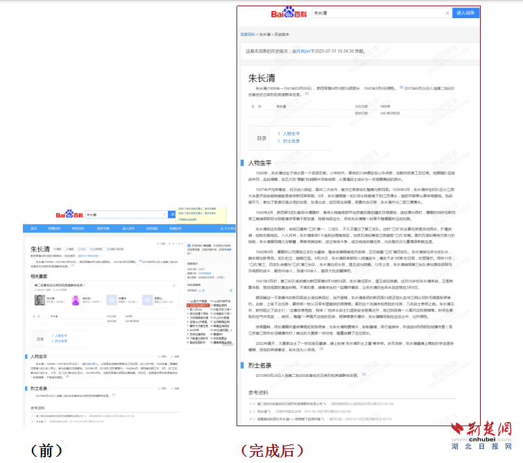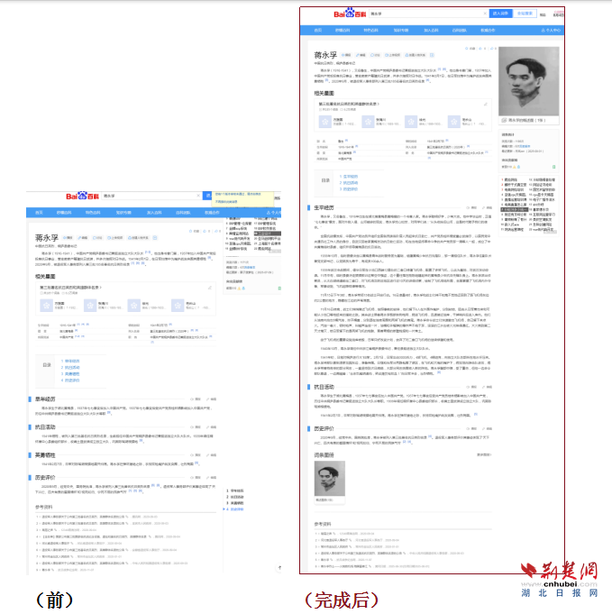 烈士蔣永孚百度詞條前后對比(左為之前,右為修改完善后)