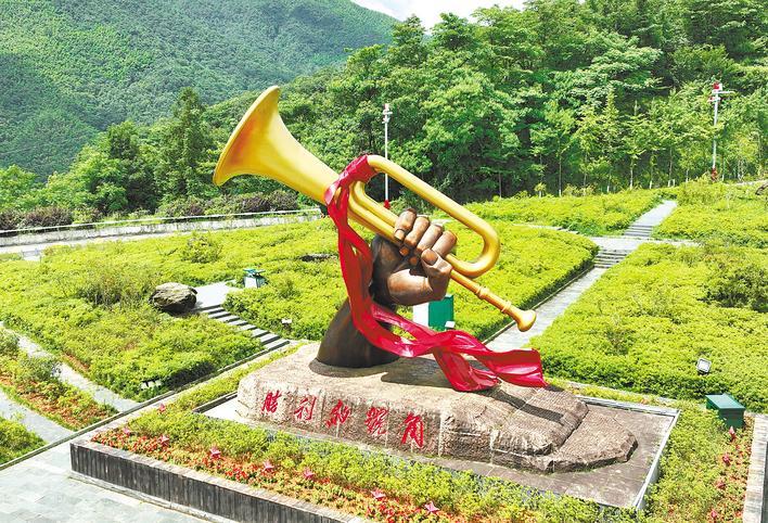 2023年6月28日在井岡山拍攝的“勝利的號角”雕塑(無人機照片)。(新華社記者 萬象 攝)
