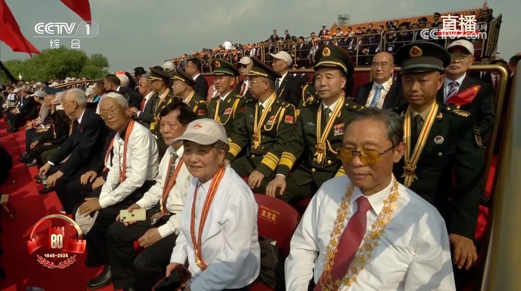 9月3日上午,紀念中國人民抗日戰爭暨世界反法西斯戰爭勝利80周年大會在北京天安門廣場隆重舉行。極目新聞記者在現場直播畫面中看到,鐘南山院士佩戴“共和國勛章”在現場觀禮。