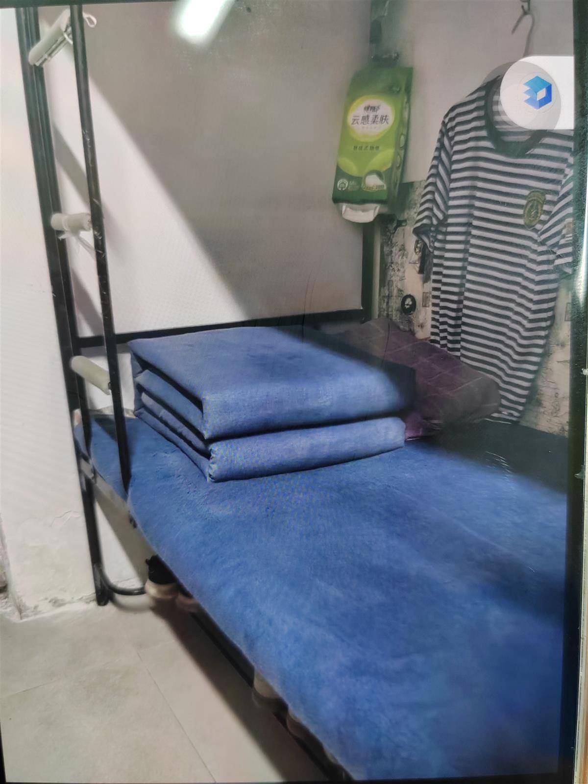 在寢室里,何運力將被子疊得方方正正。三峽大學科技學院供圖