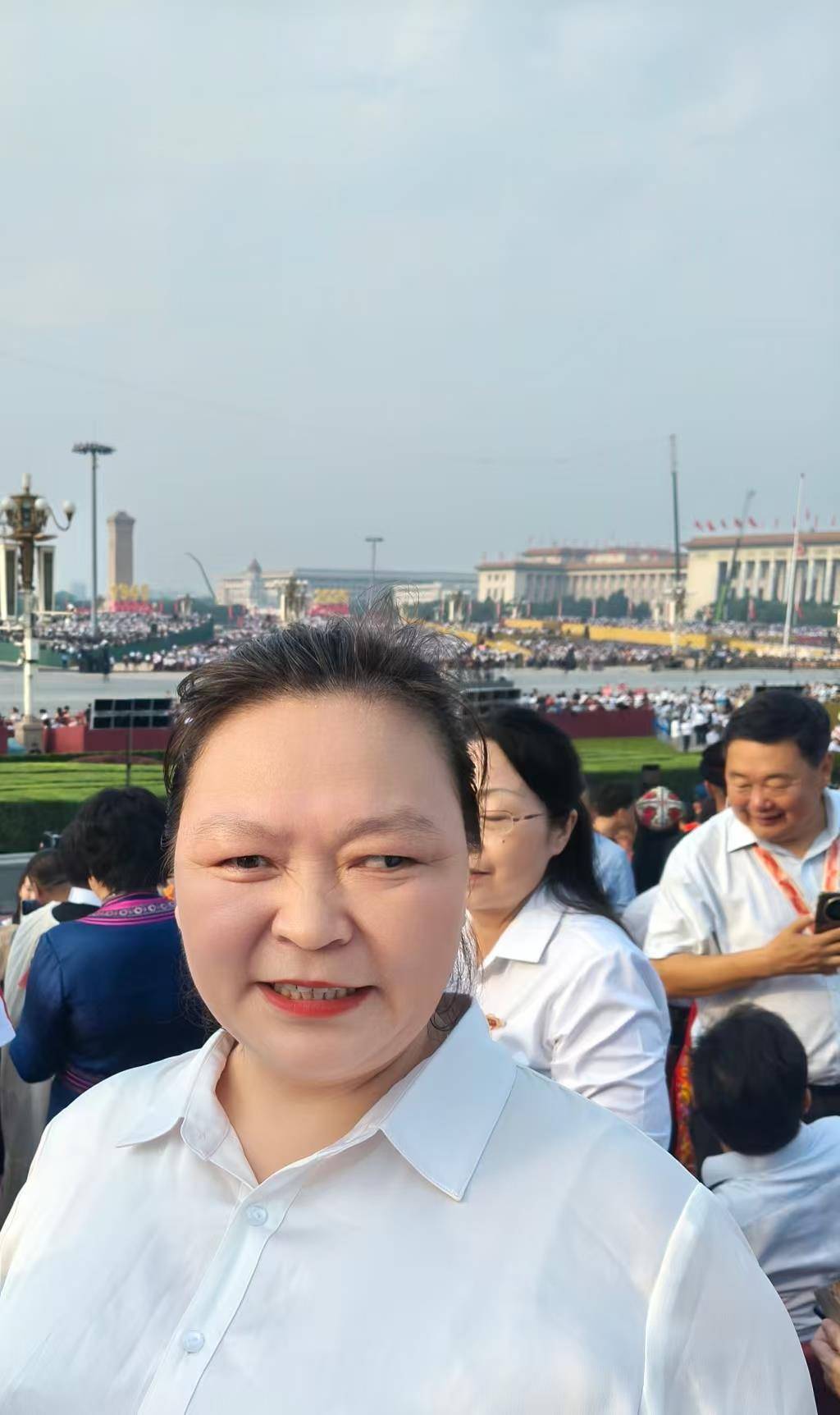 “8月底得知受邀觀禮時,我簡直不敢相信,特別激動。9月1日到達北京后,我還是很激動,想提前去現場看看?!闭f起觀禮過程,王永清仍難掩激動之情。3日清晨四點,王永清便起床,做好去現場的準備?!暗搅艘院?,天安門廣場上人山人海,音樂響起時,整個場面令人激動不已。那一刻,我特別興奮和開心。”