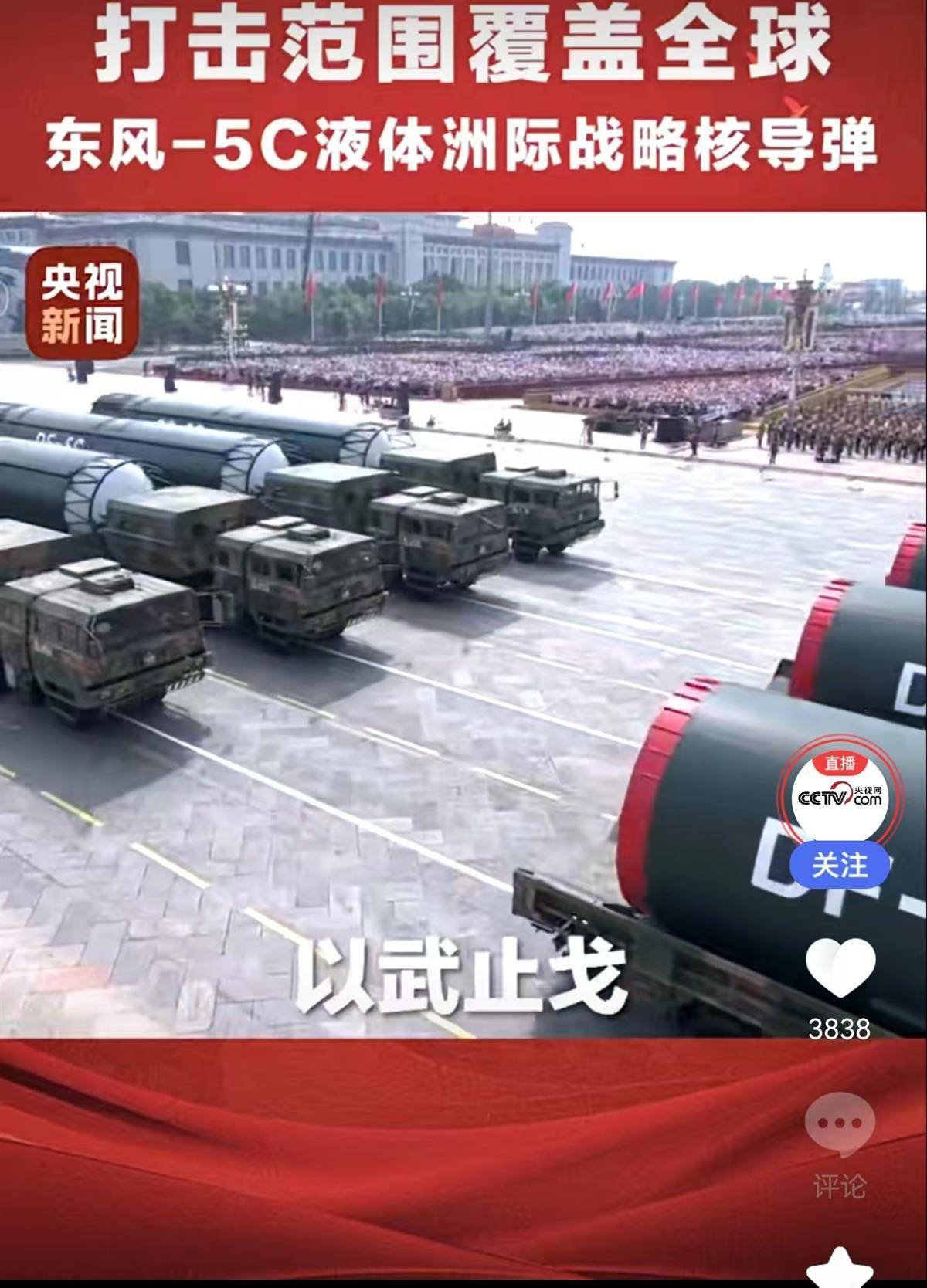 當世人驚嘆于“東風-5C”液體洲際戰略核導彈打擊范圍覆蓋全球,驚嘆于首次對外展示的部分陸海空基戰略重器、高超精打、無人和反無人裝備,驚嘆于飛飛飛飛不完的先進的預警指揮機、殲擊機、轟炸機、運輸機等,以武止戈、砥定乾坤才是背后真正的用意。