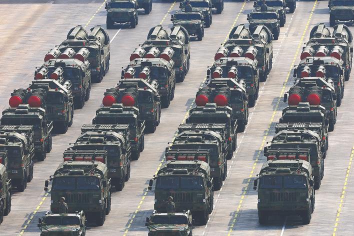 戰(zhàn)略打擊群 戰(zhàn)略打擊群由巡航導(dǎo)彈方隊、高超聲速導(dǎo)彈方隊、核導(dǎo)彈第一方隊、核導(dǎo)彈第二方隊組成。 受閱裝備包括長劍-20A、鷹擊-18C、長劍-1000導(dǎo)彈,鷹擊-21、東風(fēng)-17、東風(fēng)-26D高超聲速導(dǎo)彈,“驚雷-1”空基遠(yuǎn)程導(dǎo)彈、“巨浪-3”潛射洲際導(dǎo)彈、“東風(fēng)-61”陸基洲際導(dǎo)彈、“東風(fēng)-31”新型陸基洲際導(dǎo)彈,“東風(fēng)-5C”液體洲際戰(zhàn)略核導(dǎo)彈。