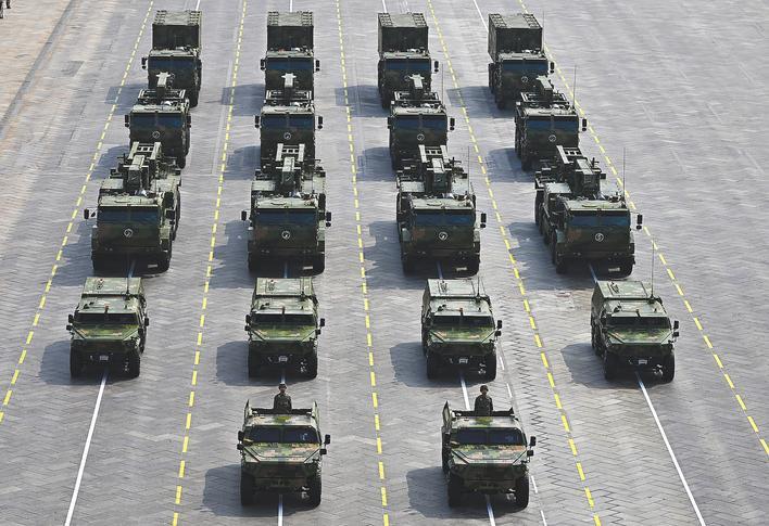 右圖為9月3日,紀(jì)念中國人民抗日戰(zhàn)爭暨世界反法西斯戰(zhàn)爭勝利80周年大會在北京隆重舉行。這是裝備方隊接受檢閱。