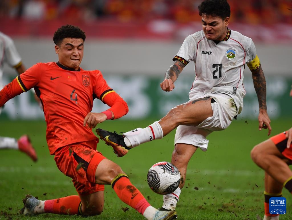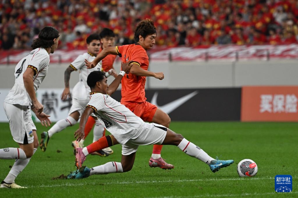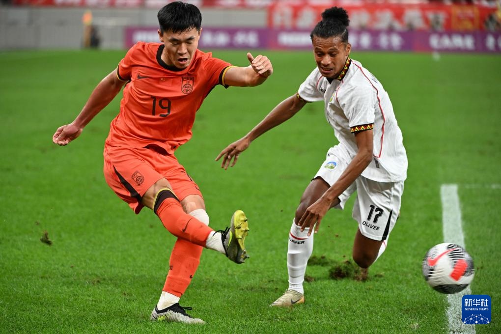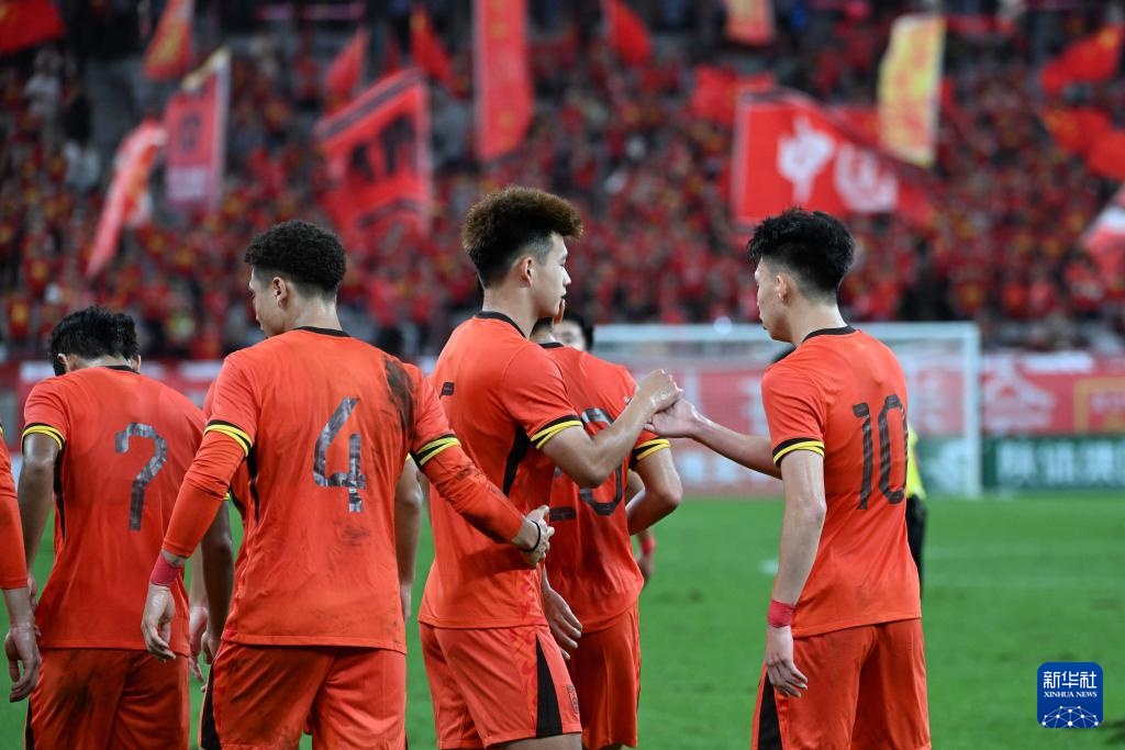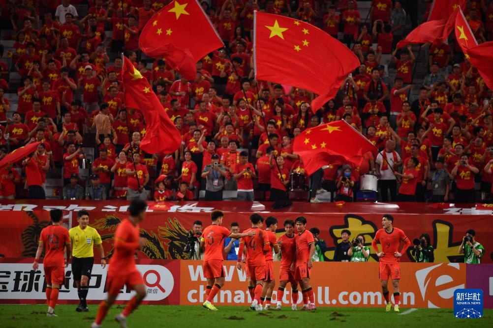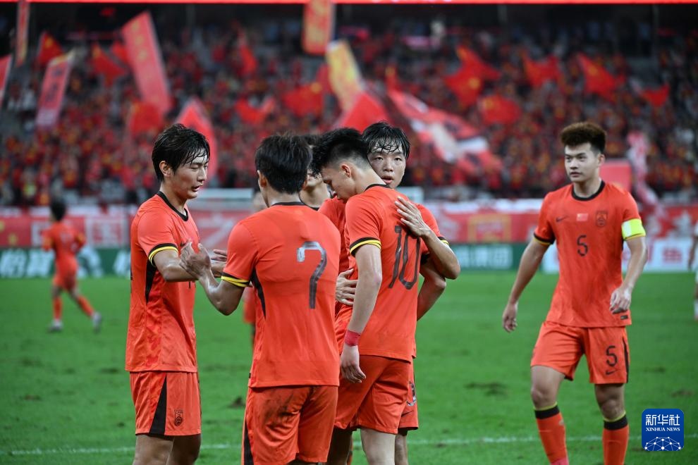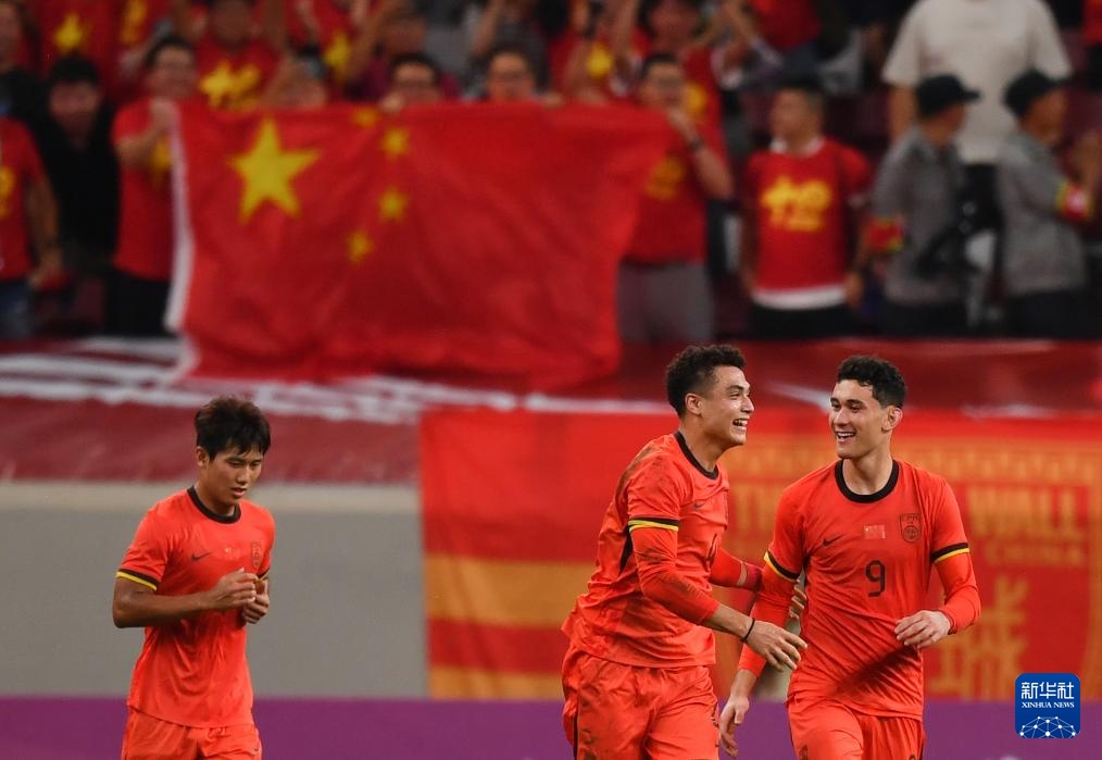 9月3日,中國隊球員在比賽中慶祝進球。
