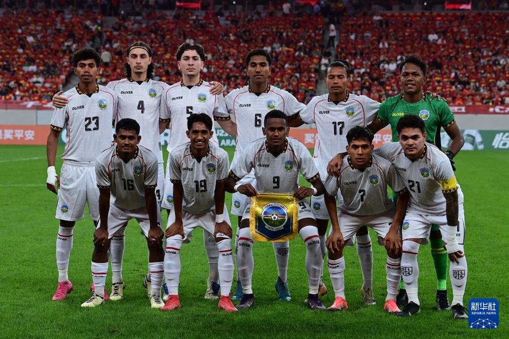 9月3日,東帝汶隊首發(fā)球員在比賽前合影。