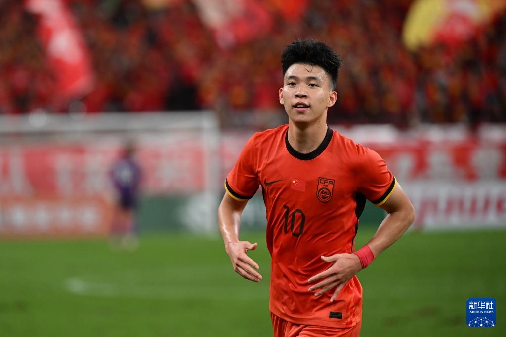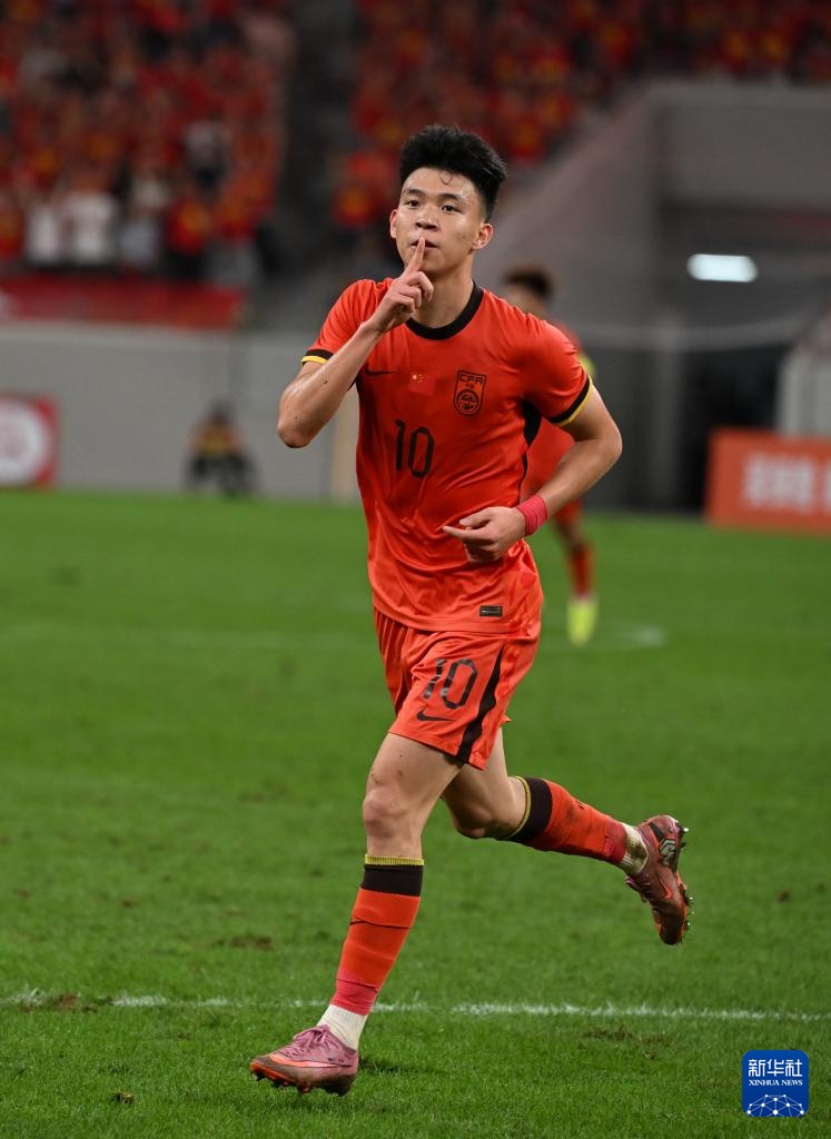 9月3日,中國隊球員王鈺棟在進球后慶祝。
