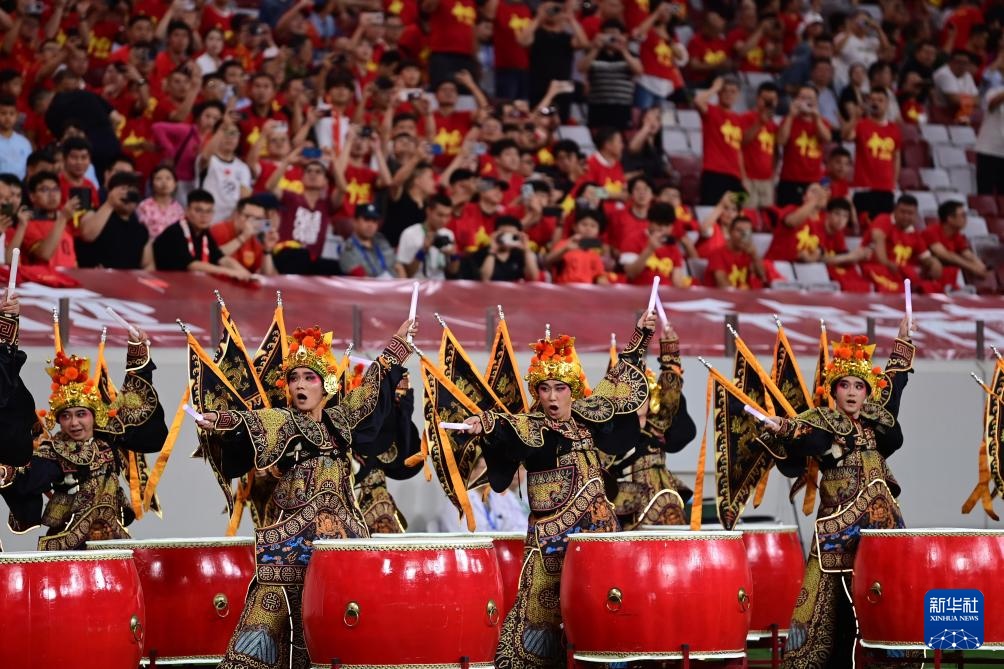 9月3日,演員在比賽前進行表演。