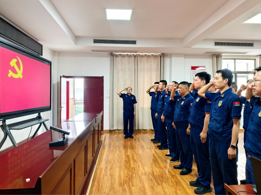 活動最后,全體黨員面對鮮紅的黨旗,莊嚴舉起右拳,鏗鏘有力的入黨誓詞回蕩在現場,表達了消防救援人員對黨的無限忠誠和為維護人民生命財產安全、維護社會穩(wěn)定貢獻一切的堅定決心。