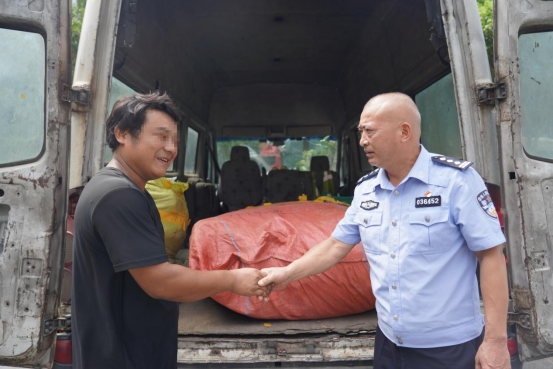發(fā)還現(xiàn)場(chǎng),擔(dān)憂了一夜的蔣先生眼含熱淚,握著民警劉建祥的手不住地感謝:“貨物若找不回來(lái),這個(gè)損失我萬(wàn)難承擔(dān),連家都不敢回了。真的太感謝民警同志了!”