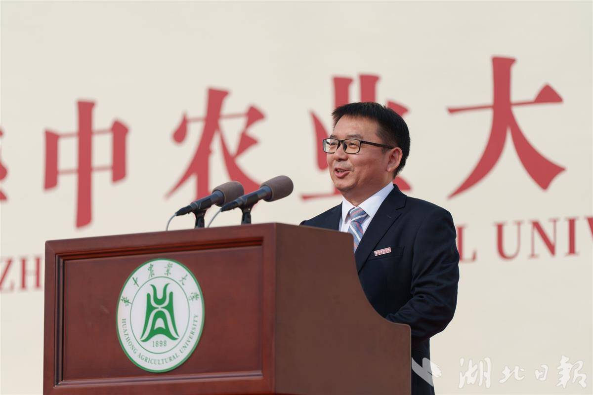 嚴建兵說,新生們要堅守初心不變,以不變應萬變。堅守“宏農學、揚國光”的初心。他回顧上世紀50年代劉后利教授為解決食用油短缺問題,從大豆研究轉向油菜研究、成為我國油菜遺傳育種學奠基人的事跡,指出華農人應錨定國家戰略需求,而非追逐浮躁風口。他同時提醒新生,未來可能遭遇實驗失敗、學術受挫、知識“水土不服”等挫折,也可能面臨沉迷游戲、學術投機、詐騙等誘惑,需像獅山樹木般扎根堅守,在跌倒時汲取經驗,在心動時堅定信念。