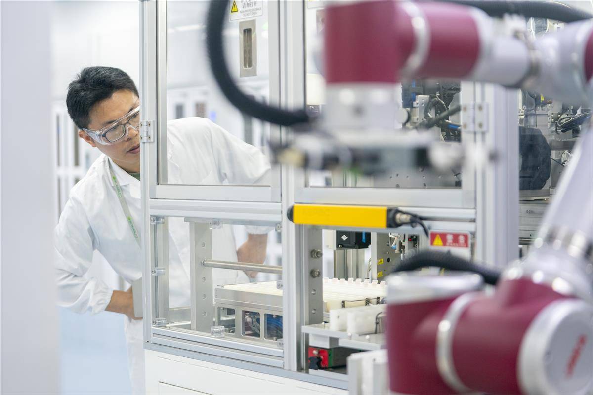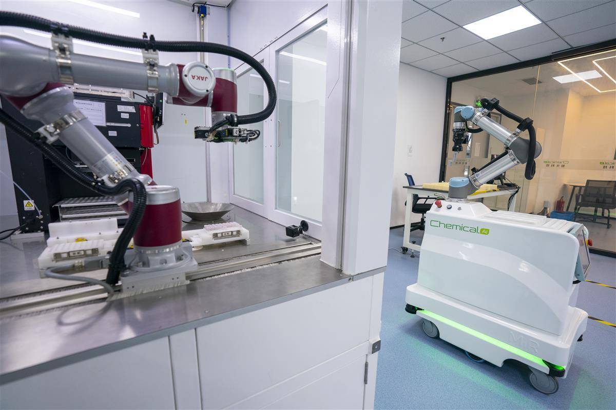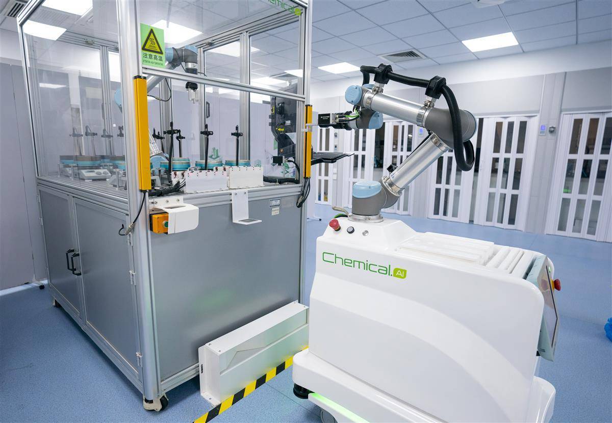 9月1日,武漢智化科技實驗室內(nèi),機(jī)械臂靈活轉(zhuǎn)動,安裝機(jī)械臂的導(dǎo)引小車穿梭于各工站之間,投料、反應(yīng)、取樣、分析全程無人操作。這座由人工智能驅(qū)動的新型化學(xué)實驗室,可24小時不間斷運行。這套智能實驗系統(tǒng)就像化學(xué)界的AI大模型,不僅能夠快速提供多條合成路線,同時對每條路線的可行性、成本等進(jìn)行評估。實驗人員可以通過中控中心,啟動自動化實驗室,可以足不出戶遠(yuǎn)程控制實驗室,監(jiān)控實驗的各個流程,進(jìn)行實驗制作分子。據(jù)介紹,AI 技術(shù)的應(yīng)用將化學(xué)家從繁瑣的手工勞動中解放出來,讓他們能夠?qū)W⒂诟邉?chuàng)造性的研發(fā)工作。傳統(tǒng)化學(xué)合成藥研發(fā)一直受限于手工操作,一位成熟化學(xué)家設(shè)計一條合成路線通常需要兩小時以上,而 AI 技術(shù)僅需五分鐘即可給出最優(yōu)路線。目前,智化科技已與輝瑞、人福醫(yī)藥等上百家知名藥企達(dá)成深度合作,共同推進(jìn)新藥智能化研發(fā)。(湖北日報全媒記者 魏錸 攝)