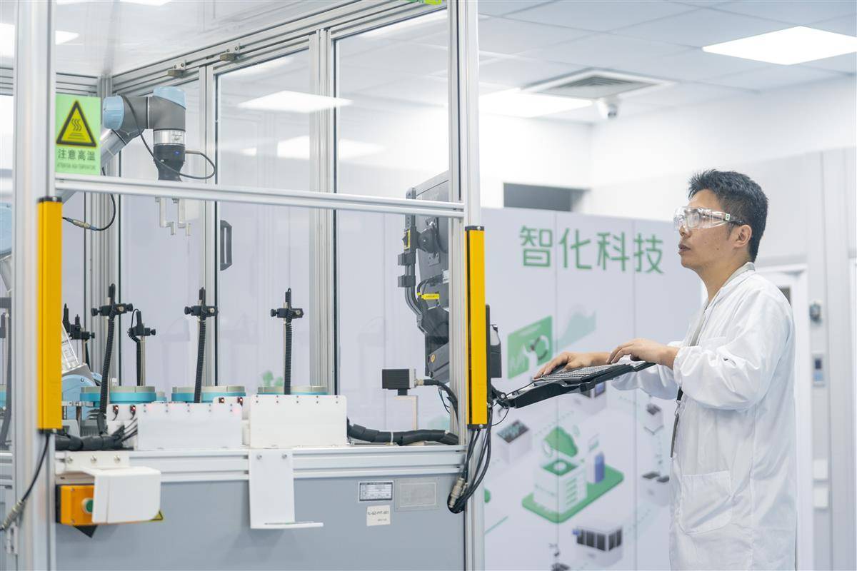 智化科技實驗室,技術(shù)人員在檢查、調(diào)整機(jī)器人參數(shù)。