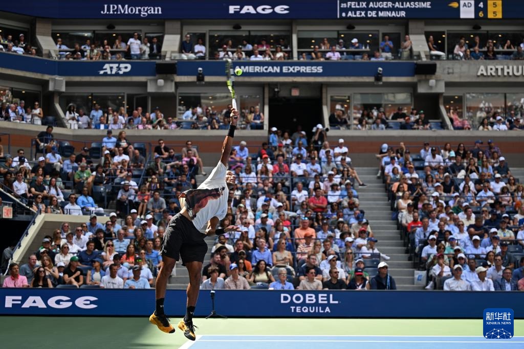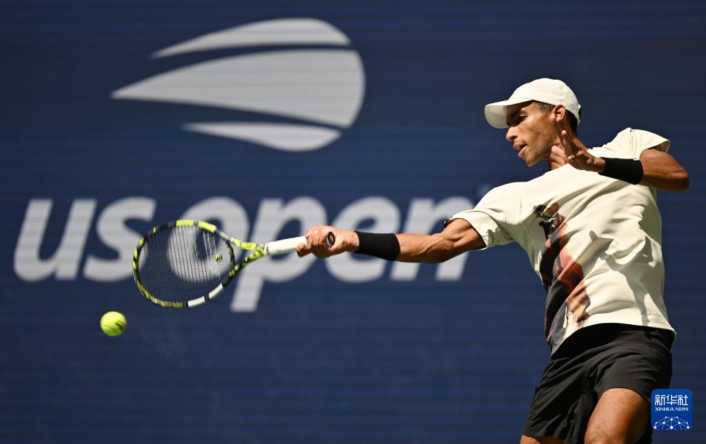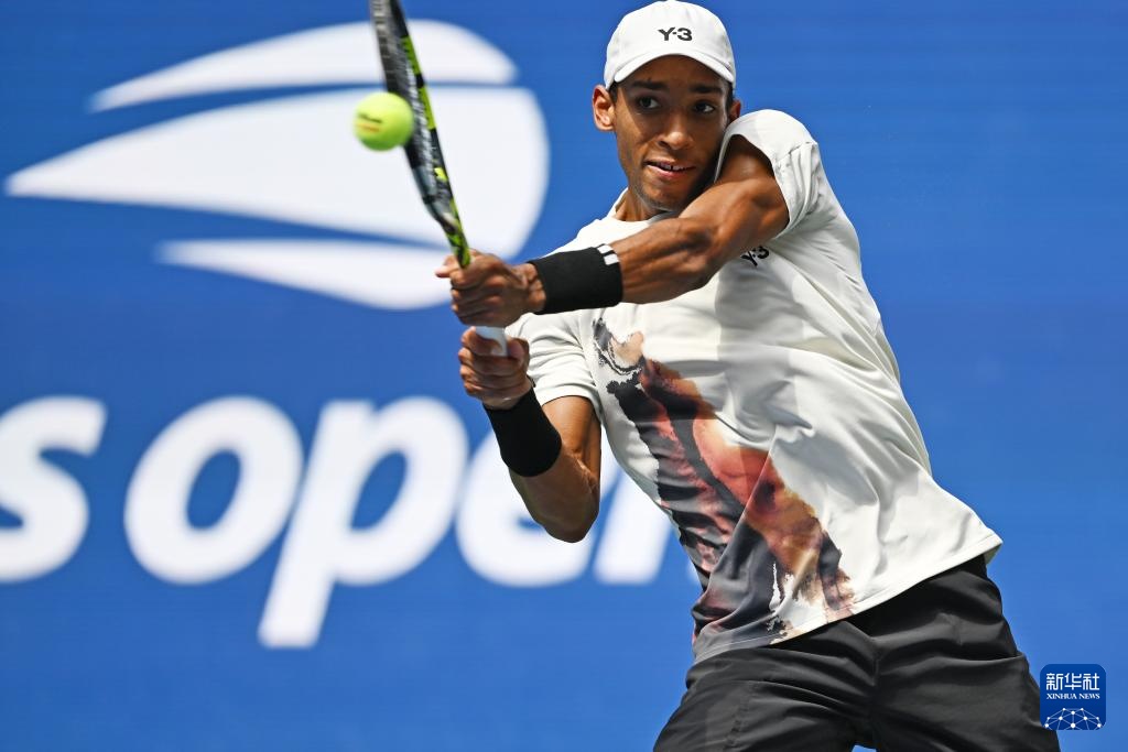 9月3日,奧熱-阿利亞西姆在比賽中發(fā)球。