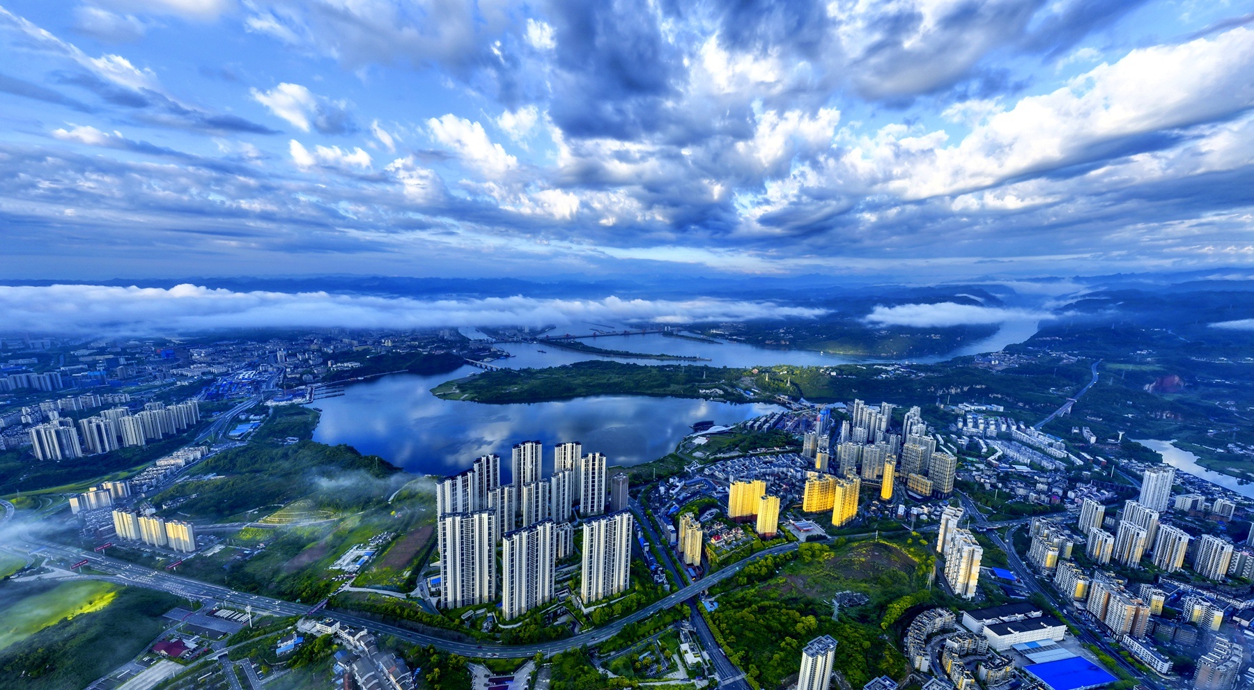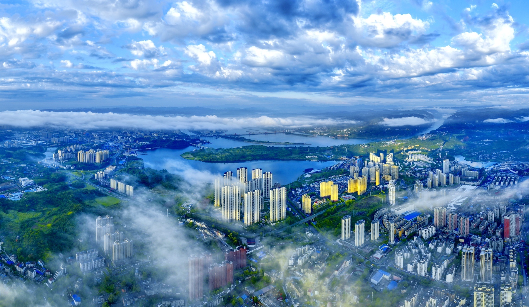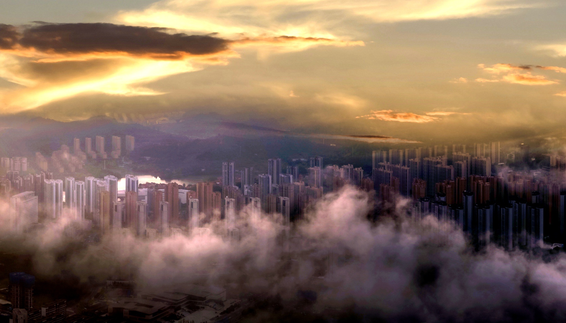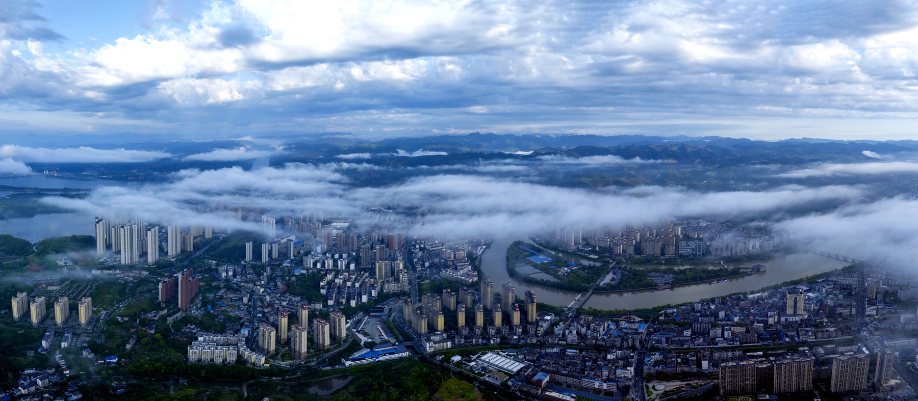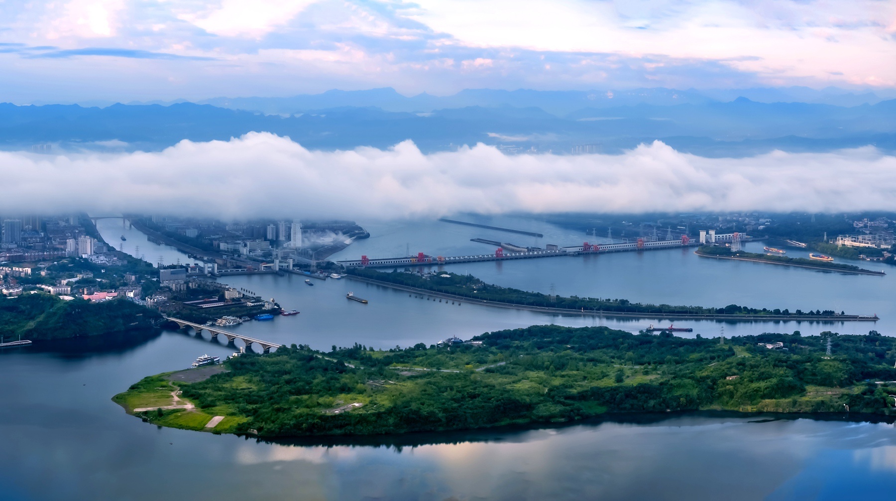 在夷陵區與宜昌主城之間,特別是葛洲壩水域,一條白色云海帶將城市與山水相連,城市建筑在云海中若隱若現,宛如仙境。