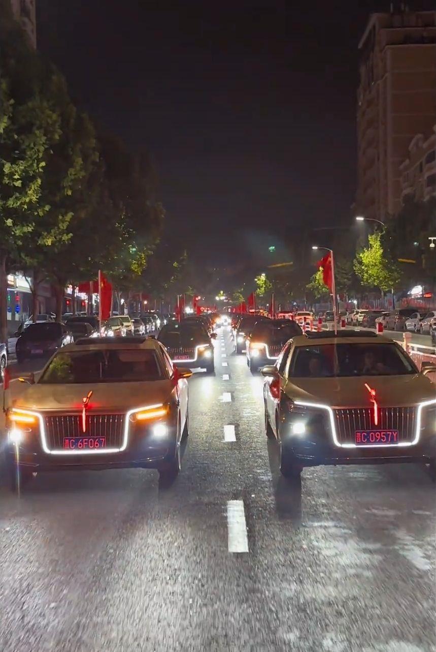 30輛插有五星紅旗的紅旗牌轎車駛過(guò)山西陽(yáng)泉主要路段(圖源:受訪者)