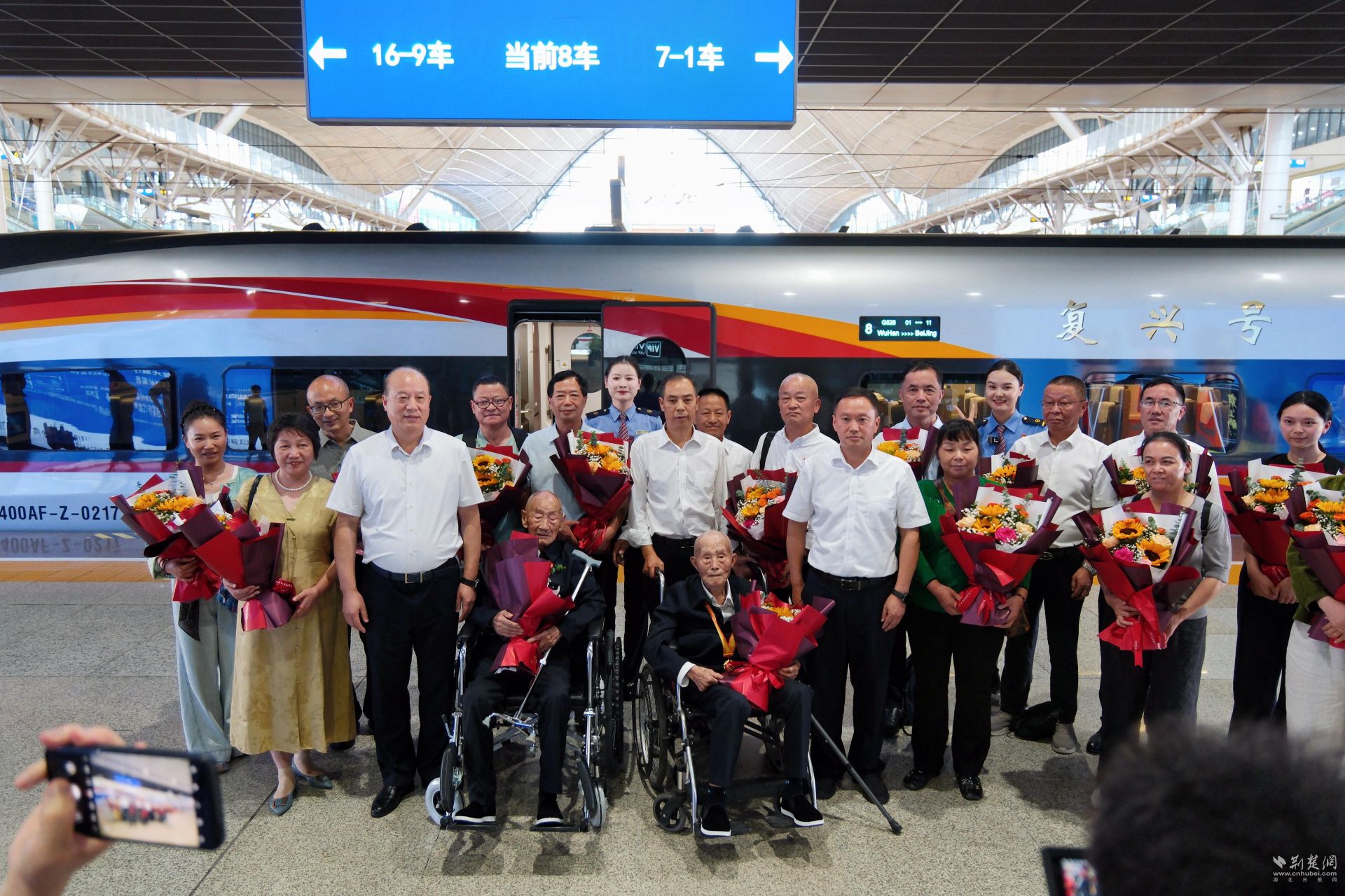 荊楚網(湖北日報網)訊(記者肖慧婷 實習生張書錦 通訊員陳凱 羅明)9月4日下午,隨著復興號列車駛入站臺,赴京參加紀念抗戰勝利80周年大會的抗戰老兵代表、烈士遺屬、退役軍人代表順利抵達武漢。省退役軍人事務廳負責人到場歡迎并送上鮮花。