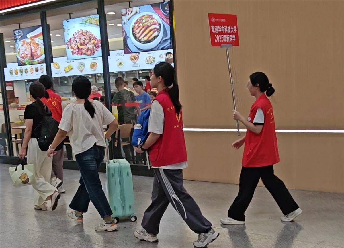“第一次來湖北,感覺熱情似火。”“早就聽說了武漢的熱干面,今天就品嘗品嘗!”“哪里可以買到蒜鳥?”來自湖南、四川、福建、廣西等地的新生們,臉上洋溢著興奮的笑容。話語間滿是對即將在湖北開啟的大學時光的憧憬與期待。