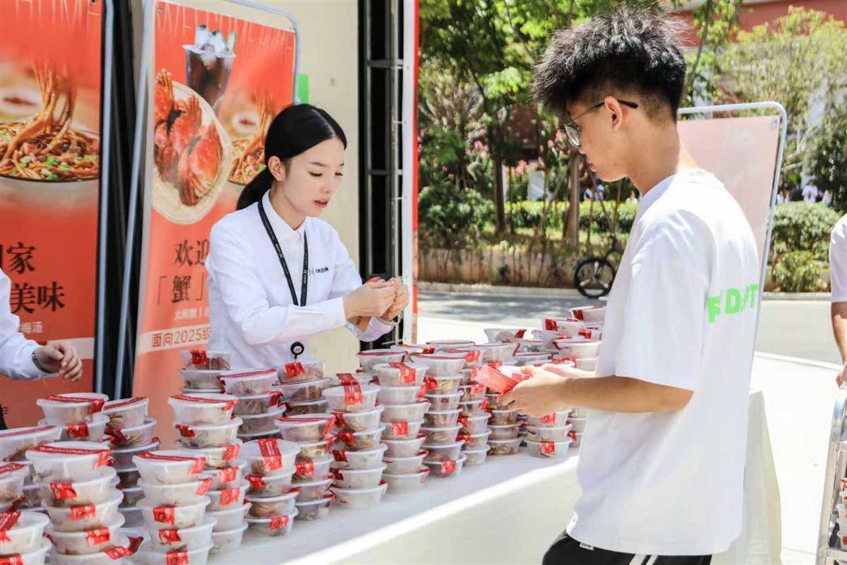 “送上大閘蟹是希望同學們的學業紅紅火火,熱干面與酸梅湯是湖北的地域美食,讓大家愛上荊楚味道。”湖北華鼎團膳管理公司董事長李清華稱。