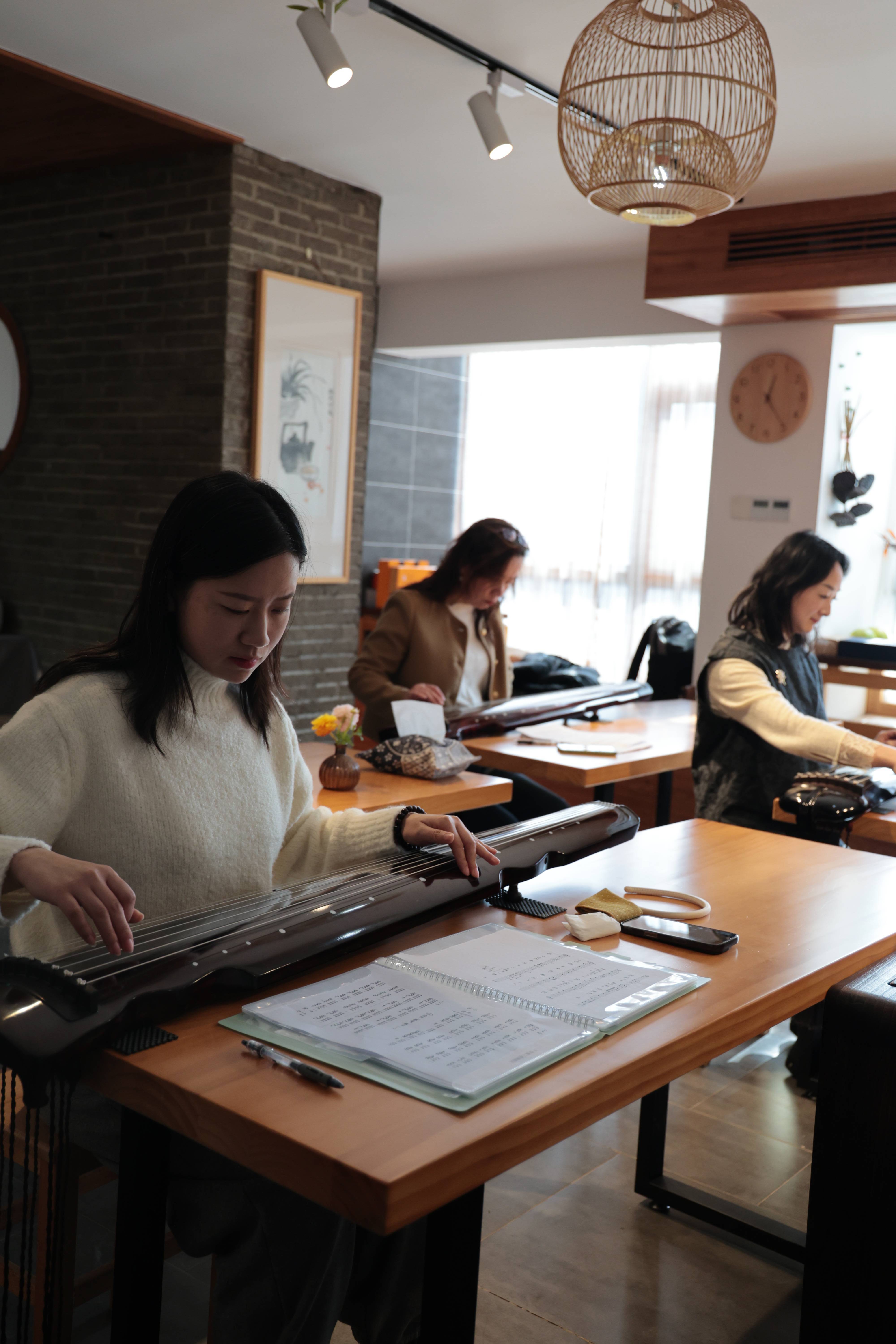 吳銘介紹,溪山琴堂最開始只是一個古琴興趣社,會定期舉辦雅集,邀請相熟的琴友聚在一起彈琴品茗,探討古琴的門道,直到前年吳銘留學回國,才著手開辦工作室,進行系統的教學授課。在琴堂參觀時,吳銘向記者科普了一些基礎的古琴知識,他年紀輕輕,但一開口便能把古琴上下三千年的歷史說得頭頭是道。他興致勃勃地拿出幾本珍藏的古琴琴譜向記者展示,介紹了現存最古老的古琴曲譜《碣石·幽蘭調》。面對乍看如天書一般的古琴減字譜,吳銘卻如數家珍。他還自己總結了一套系統的授課理論,盡量把一些抽象的概念講得通俗易懂,讓不同年齡階段的學生都能聽懂。