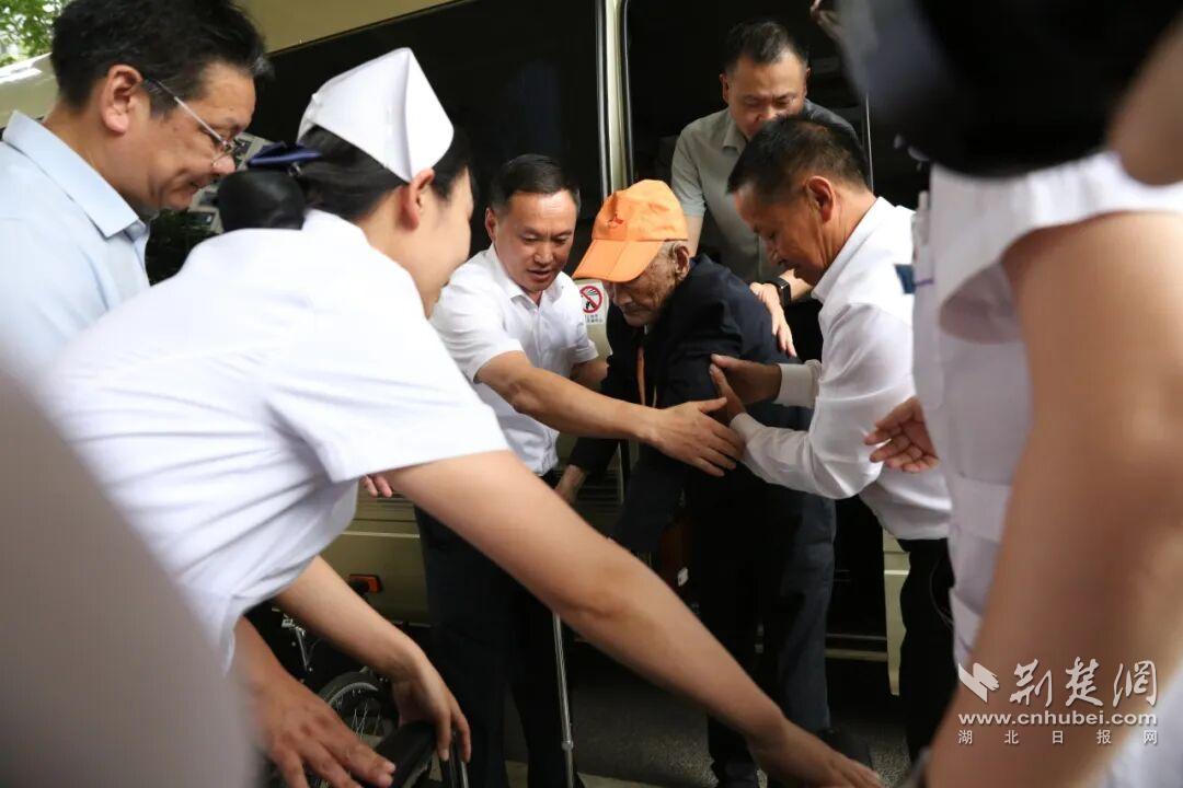 閱兵觀禮結束后,抗戰老兵抵達湖北省榮軍優撫醫院南湖院區。通訊員供圖