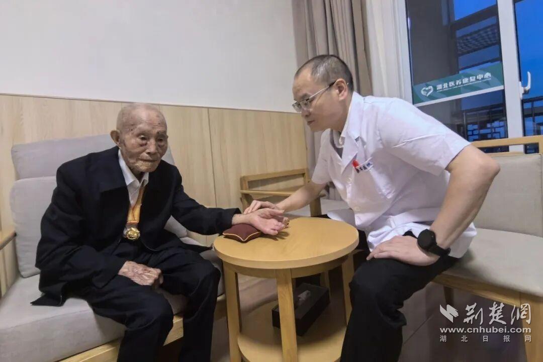 荊楚網(湖北日報網)訊(通訊員 袁鳴)9月4日下午,湖北百歲抗戰老兵宋其祥、劉吉祥前往北京參加紀念中國人民抗日戰爭暨世界反法西斯戰爭勝利80周年大會后,乘坐高鐵返漢。百歲老兵步履蹣跚卻精神矍鑠,在他們的榮光之旅背后,還有一支由湖北省榮軍優撫醫院組建的醫療保障團隊全程守護。