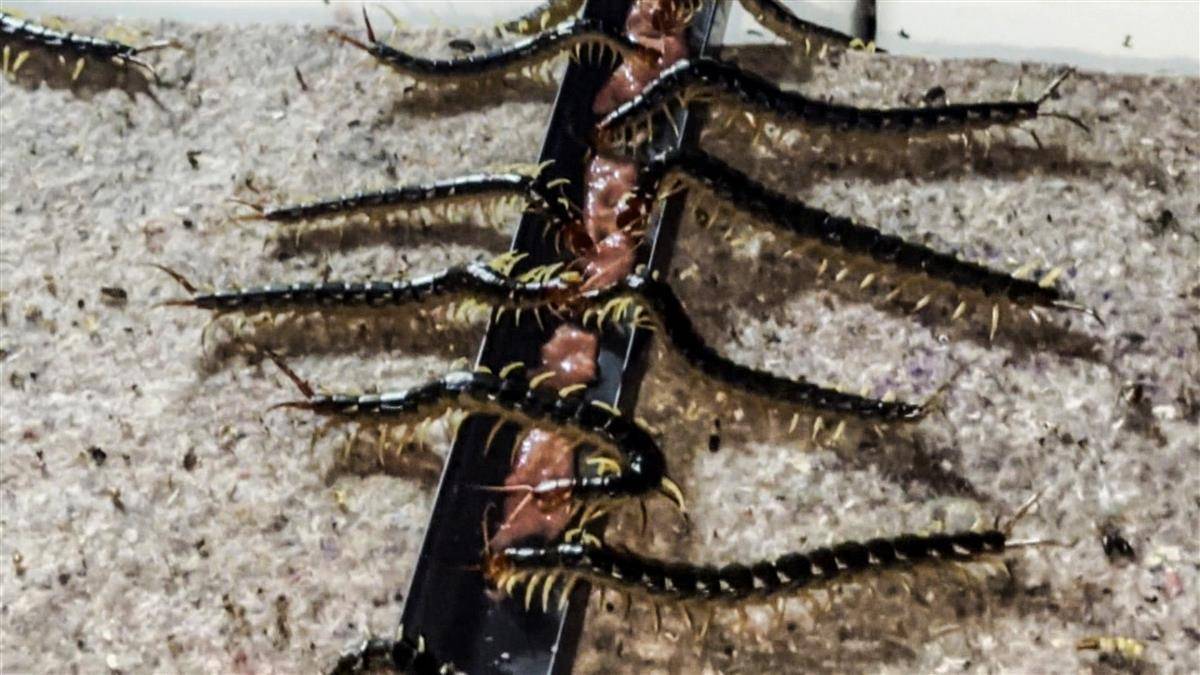 蜈蚣正在進食。 湖北日報全媒記者 夏曉君 攝