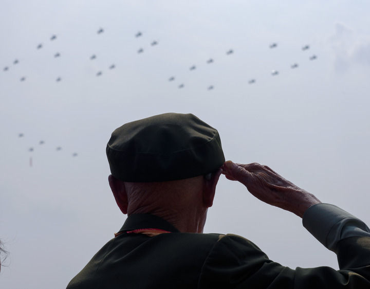 2025年9月3日,紀念中國人民抗日戰爭暨世界反法西斯戰爭勝利80周年大會在北京隆重舉行。這是抗戰老戰士在天安門城樓上敬禮。新華社記者 才揚 攝