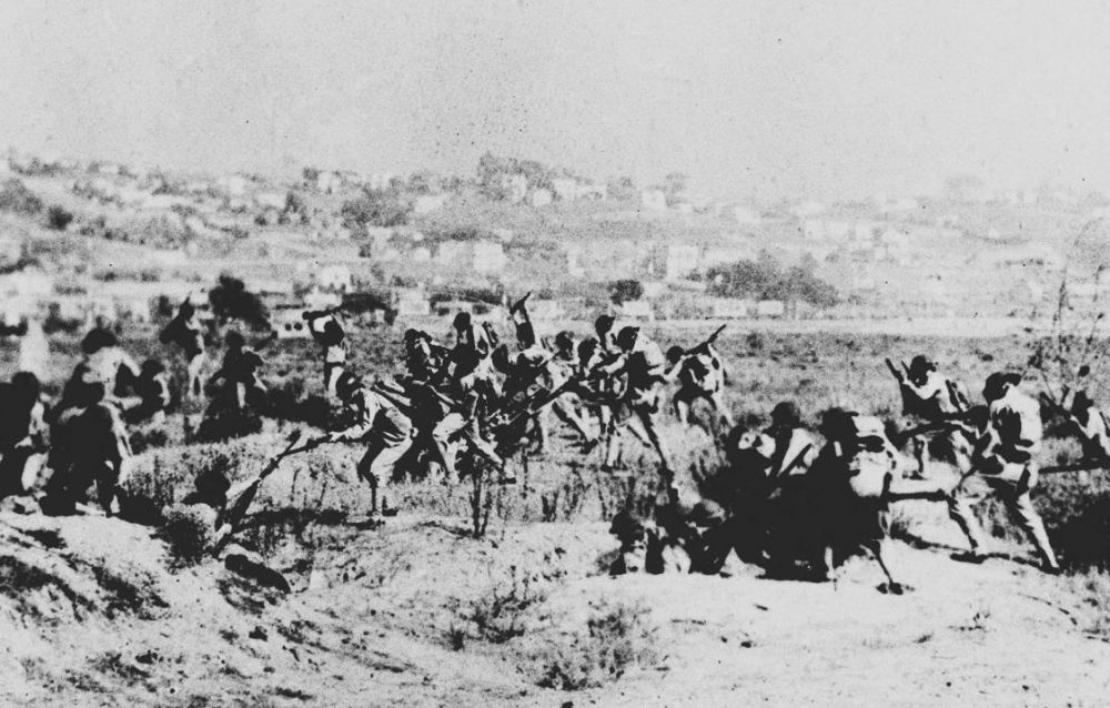 1938年,新四軍在馬家園戰斗中英勇阻擊日寇。新華社發