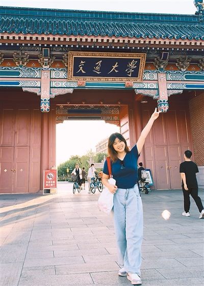 許欣寧在上海交通大學校門口留影。