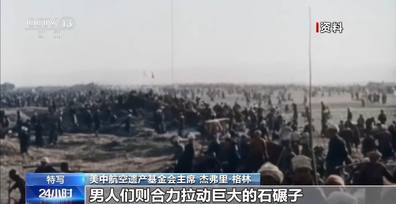 美中航空遺產基金會主席 杰弗里·格林:婦女們背上背著孩子,坐在地上把大石塊敲成小石子;孩子們再把小石子撿到指定地點;男人們則合力拉動巨大的石碾子,有時候要100個人才能拉動一臺10噸重的石碾子,就為了把跑道壓平整。無論是寒冬還是酷暑,婦女們敲碎的每一塊石頭,都是在為機場出力,為飛機起降創造條件,讓美國飛行員能順利升空抗擊日軍。這背后是一種信念:他們所做的一切都在為勝利搭建基礎。