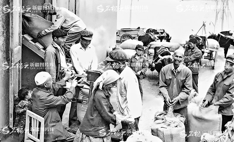1980年秋,岳普湖縣阿其克公社農民首次向國家上交商品糧。 圖片由新疆圖片庫提供