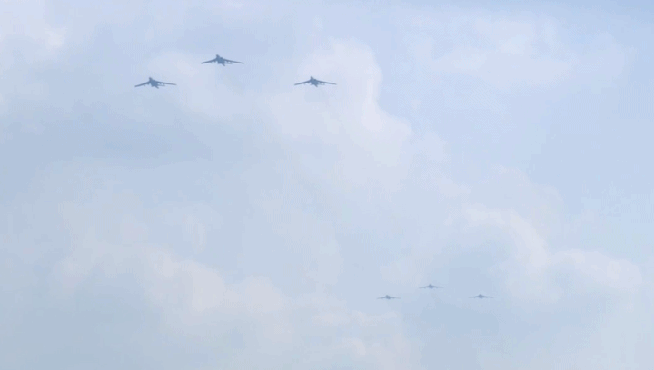 受閱的轟-6N戰略轟炸機以及轟-6K、轟-6J編為三個楔隊,具備遠程奔襲、大區域巡航、防區外打擊能力,是我軍空基遠程打擊力量。