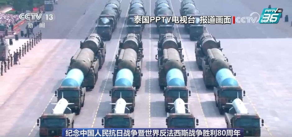 泰國PPTV電視臺表示,閱兵式上展示了中國海陸空新型武器裝備,展現出現代化中國軍隊的威武雄壯。