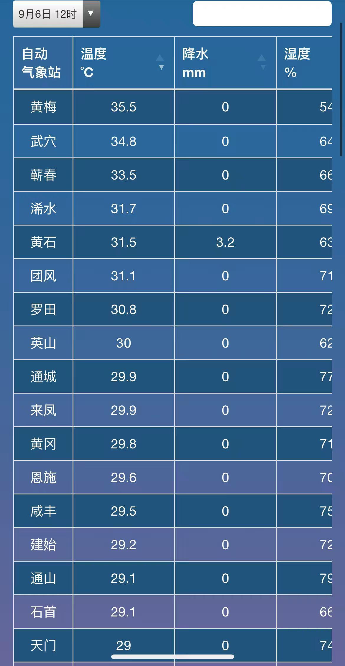 中午12時,湖北大部地區20℃+,僅個別縣市超過30℃:黃梅35.5℃、武穴34.8℃、蘄春33.5℃、浠水31.7℃、黃石31.5℃、團風31.1℃、羅田30.8℃和英山30℃。