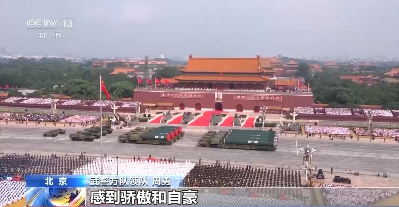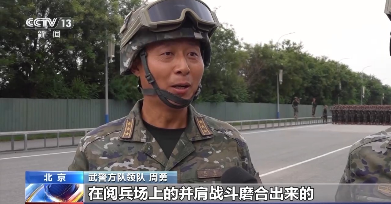 武警方隊領隊 周勇:受閱絕對不是一個人的展示,一個人的舞臺和一個人的榮光,而是一支軍隊,向戰向強、由弱到強的一個蛻變。我是第五次閱兵,就拿今年來說,受閱裝備幾百件,很多都是高精尖,很多都是首次展示,今天的中國真的可以告慰先烈,我們真的為我們祖國的偉大感到驕傲和自豪。