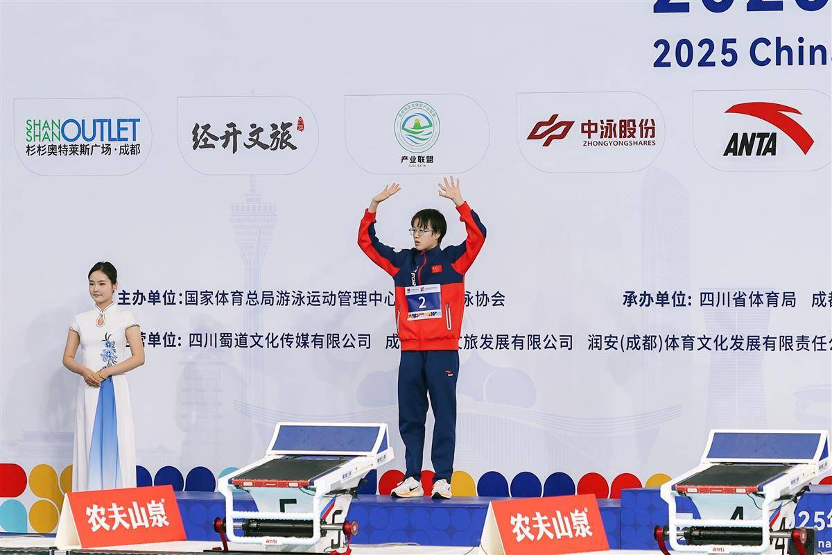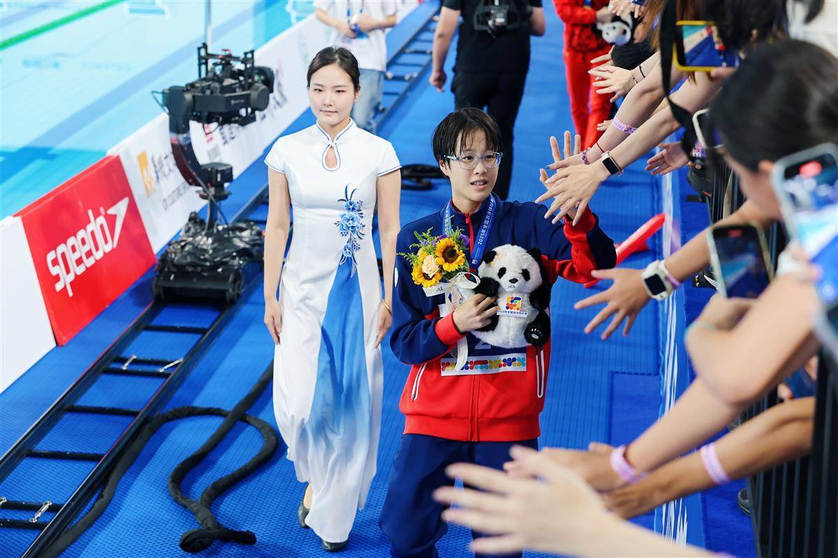 戴上藍色邊框的近視眼鏡登上亞軍領獎臺,柯雯曦滿臉稚氣。頒獎后路過觀眾席時,她羞澀地與熱情觀眾逐一擊掌。從2023年省運會七冠王,到今年3月獲得全國春季游泳錦標賽女子400米混合泳季軍,再到本次全錦賽摘銀,盡管與世界頂尖水平還有差距,但柯雯曦正在快速成長。
