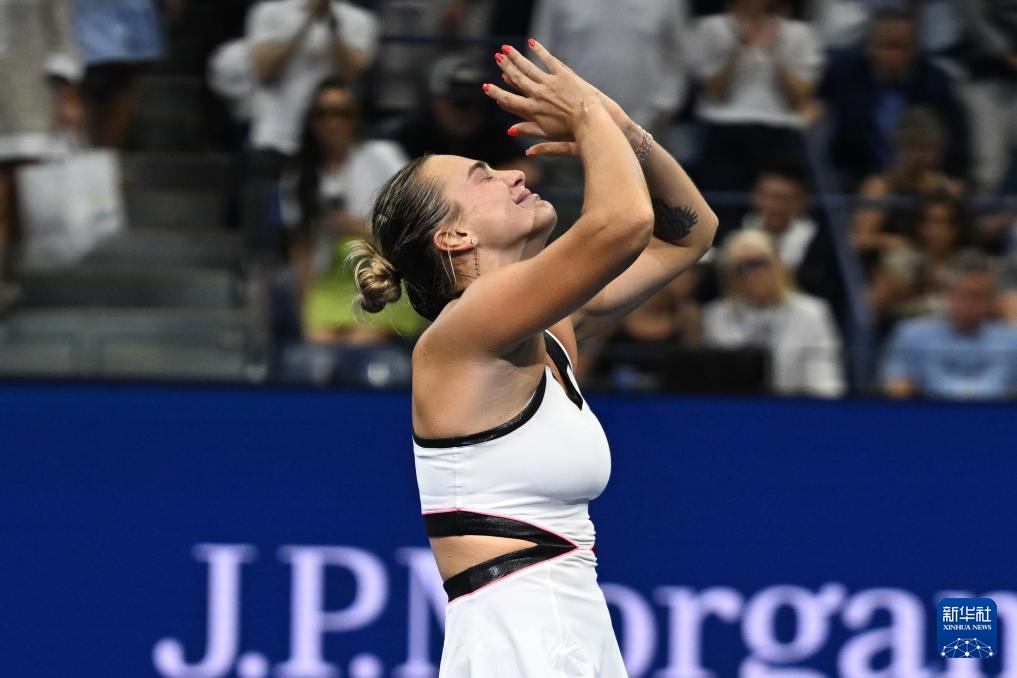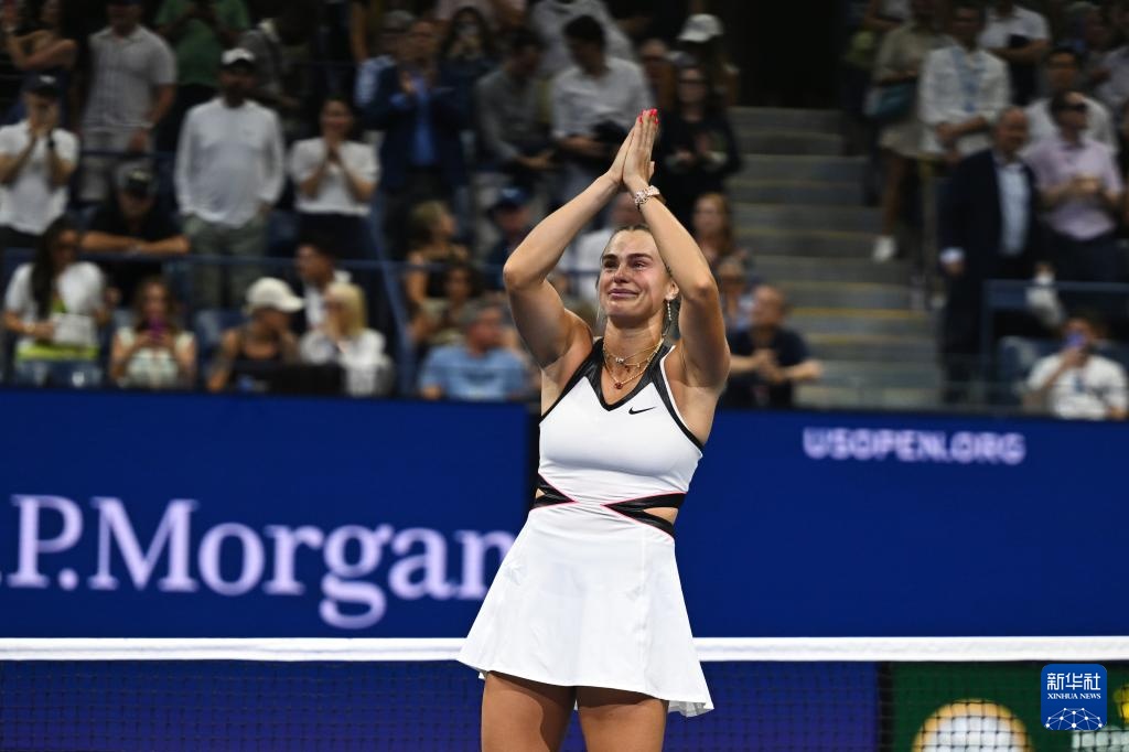 9月6日,薩巴倫卡在比賽獲勝后向觀眾致意。